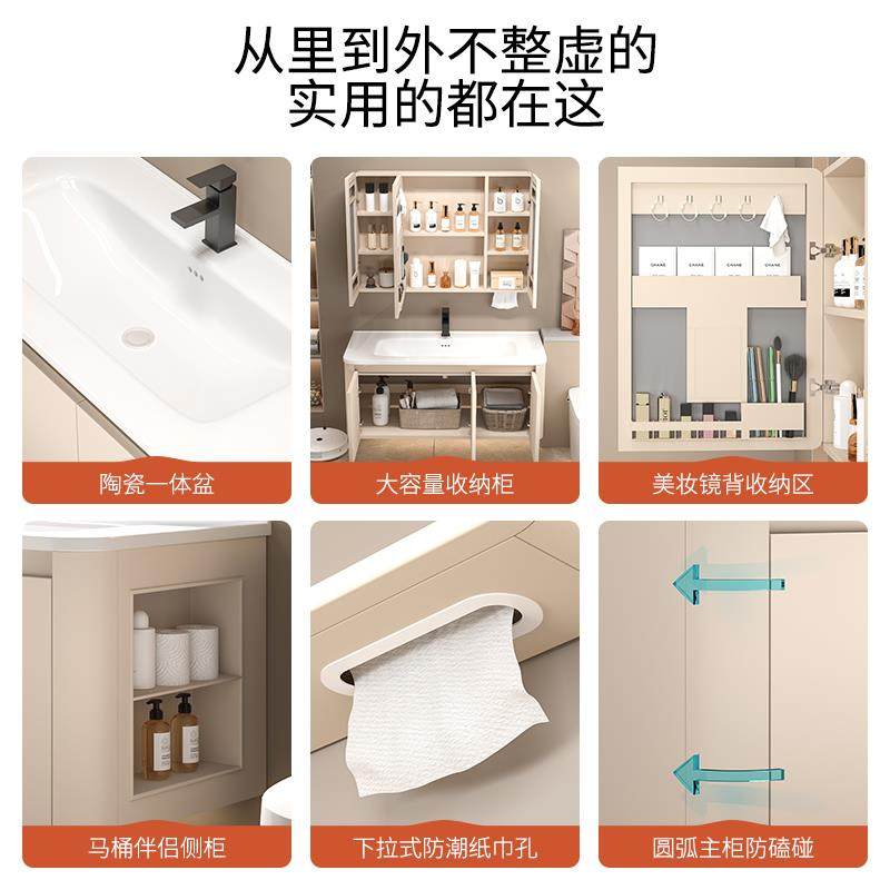 天猫卫浴室柜陶瓷一体盆法式日式浴室柜加厚蜂窝铝卫生间陶瓷一体洗漱