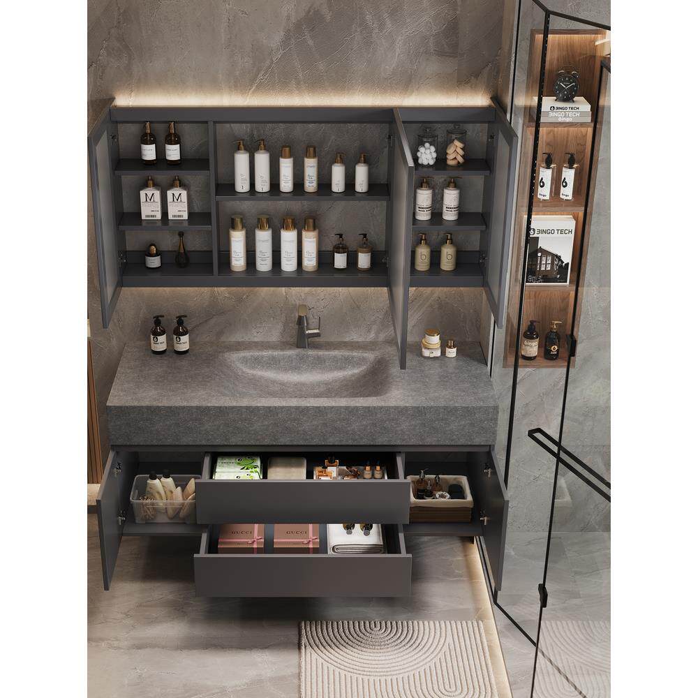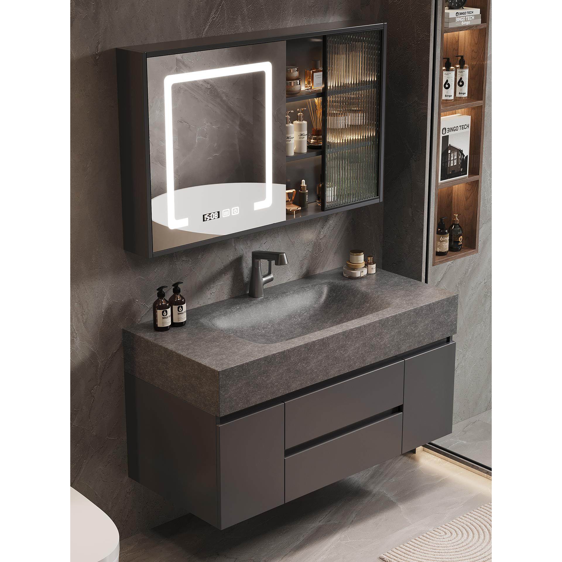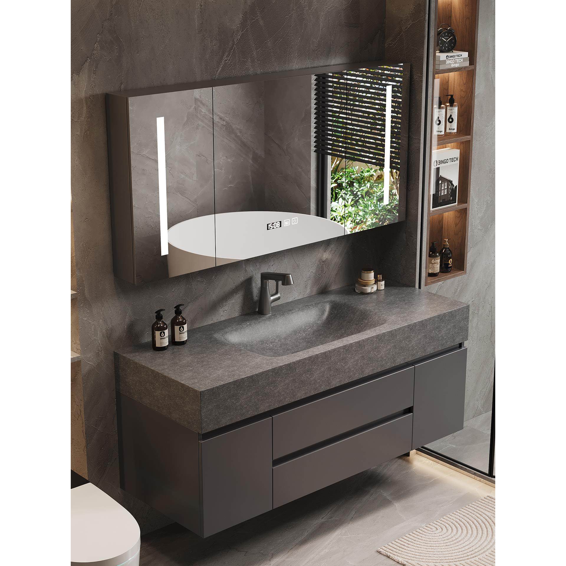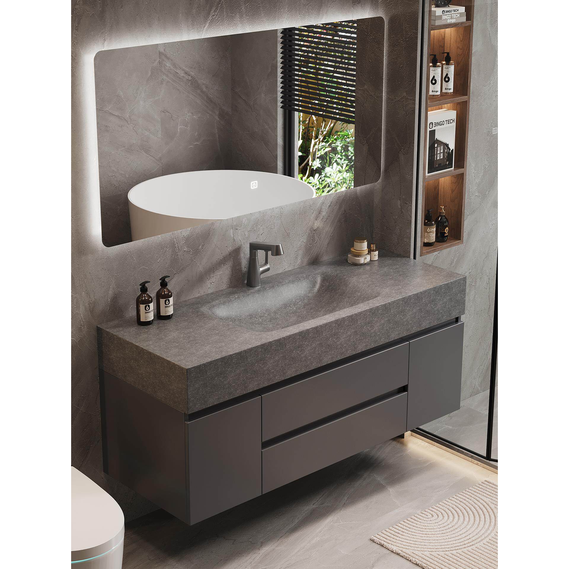 酒店风岩板陶瓷无缝一体盆智能浴室柜组合洗手洗脸化妆室洗漱台池