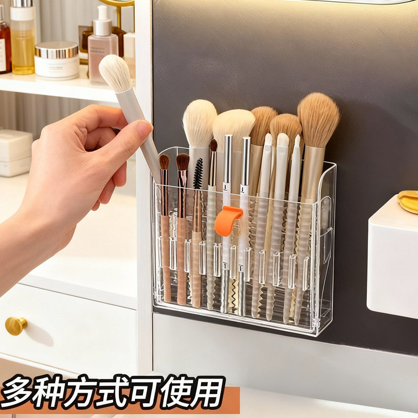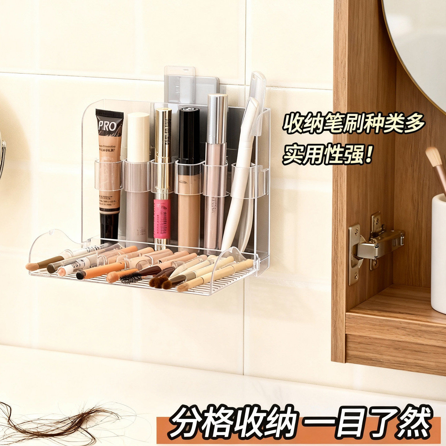淘宝镜柜化妆刷收纳神器壁挂免打孔笔刷筒卫生间浴室柜门后分格置物架