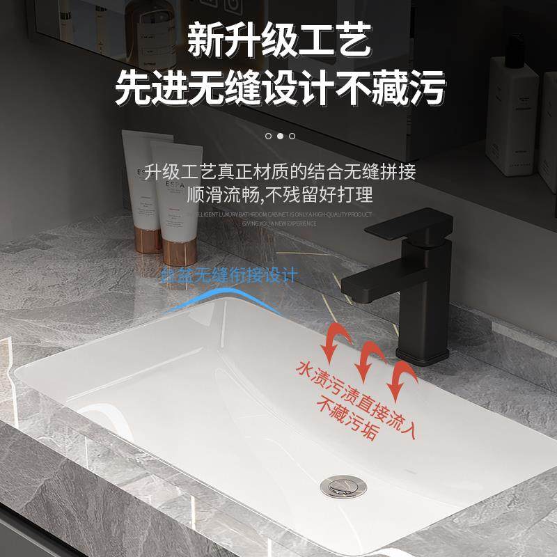 淘酒店风岩板陶瓷无缝一体盆智能浴室柜组合洗手洗脸化妆室洗漱台池