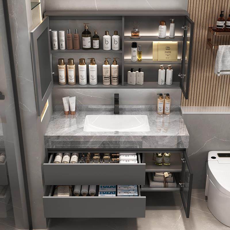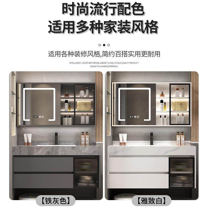 现代简约浴室柜组合陶瓷一体盆化妆室洗脸盆洗漱台智能收纳镜柜