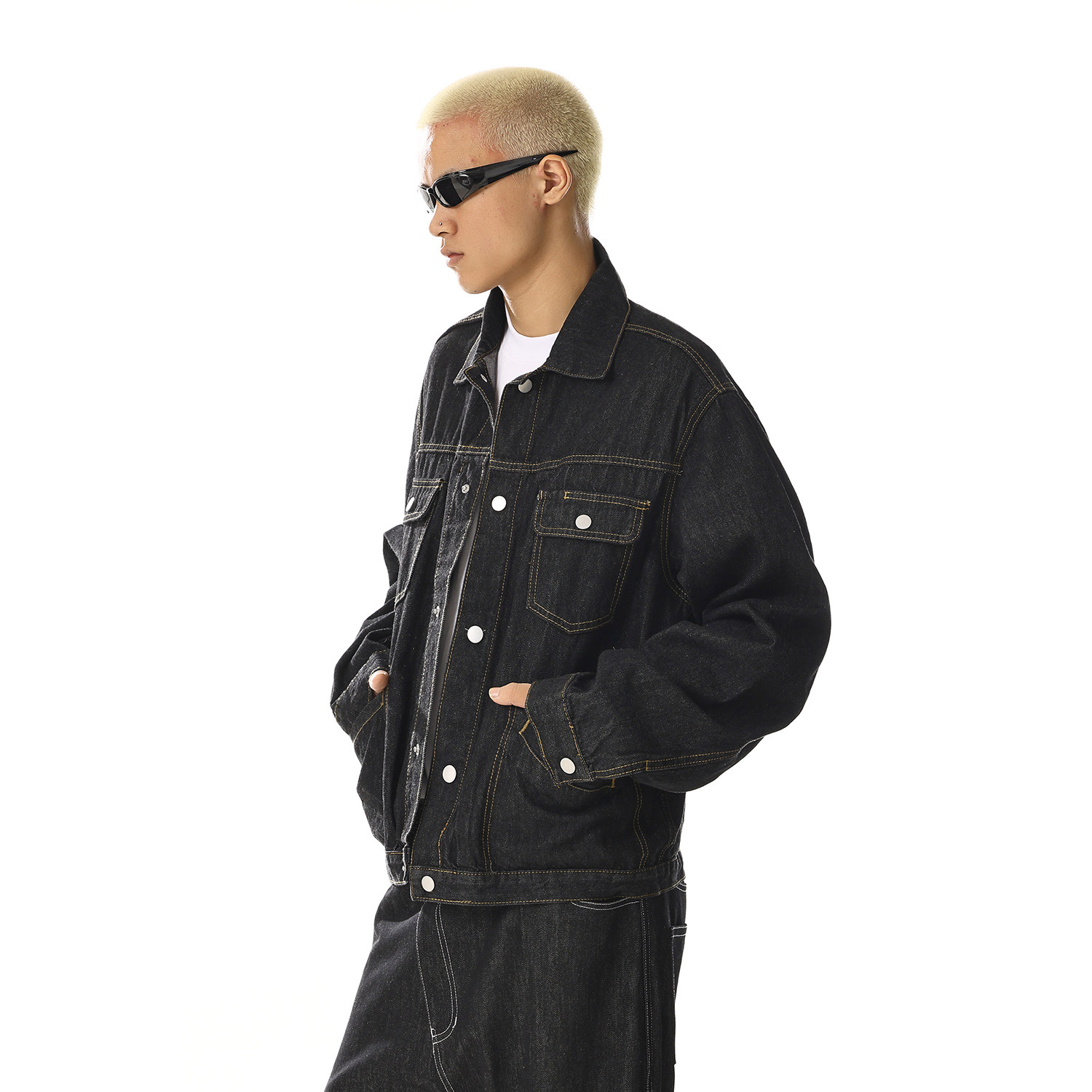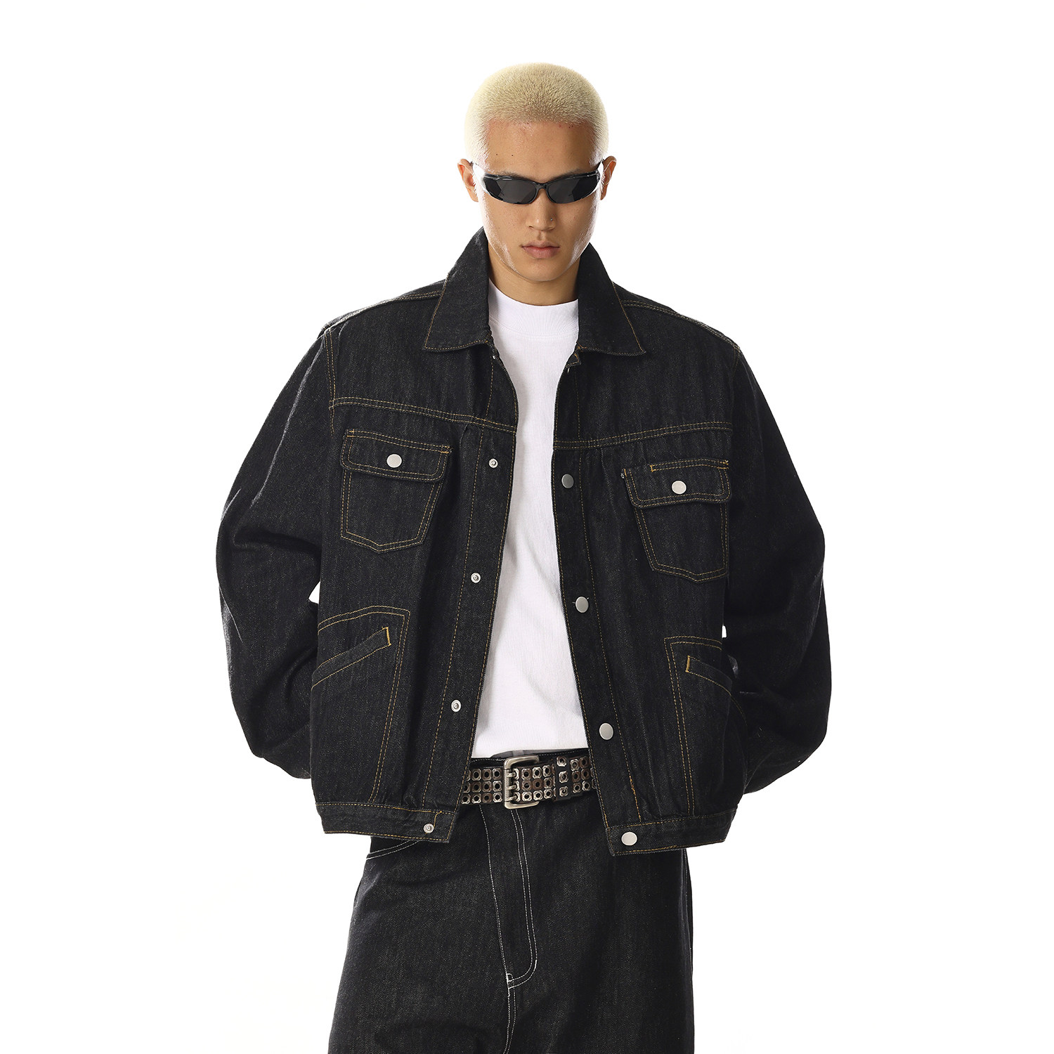 淘宝美式复古设计感原色牛仔外套宽松百搭正肩口袋cleanfit夹克上衣男