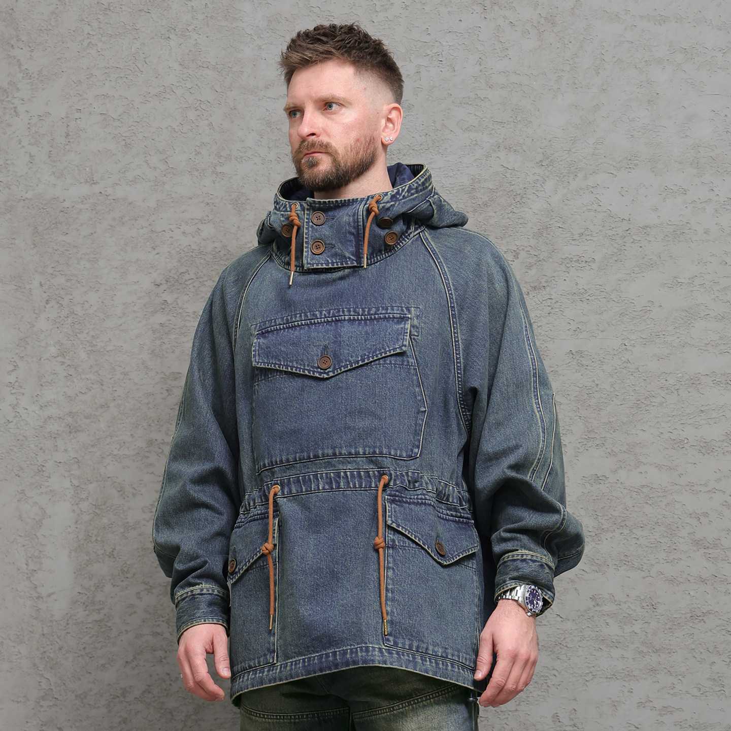淘宝西里布海军甲板连帽牛仔套头衫咔叽复古拔染做旧多袋猎装夹克外套