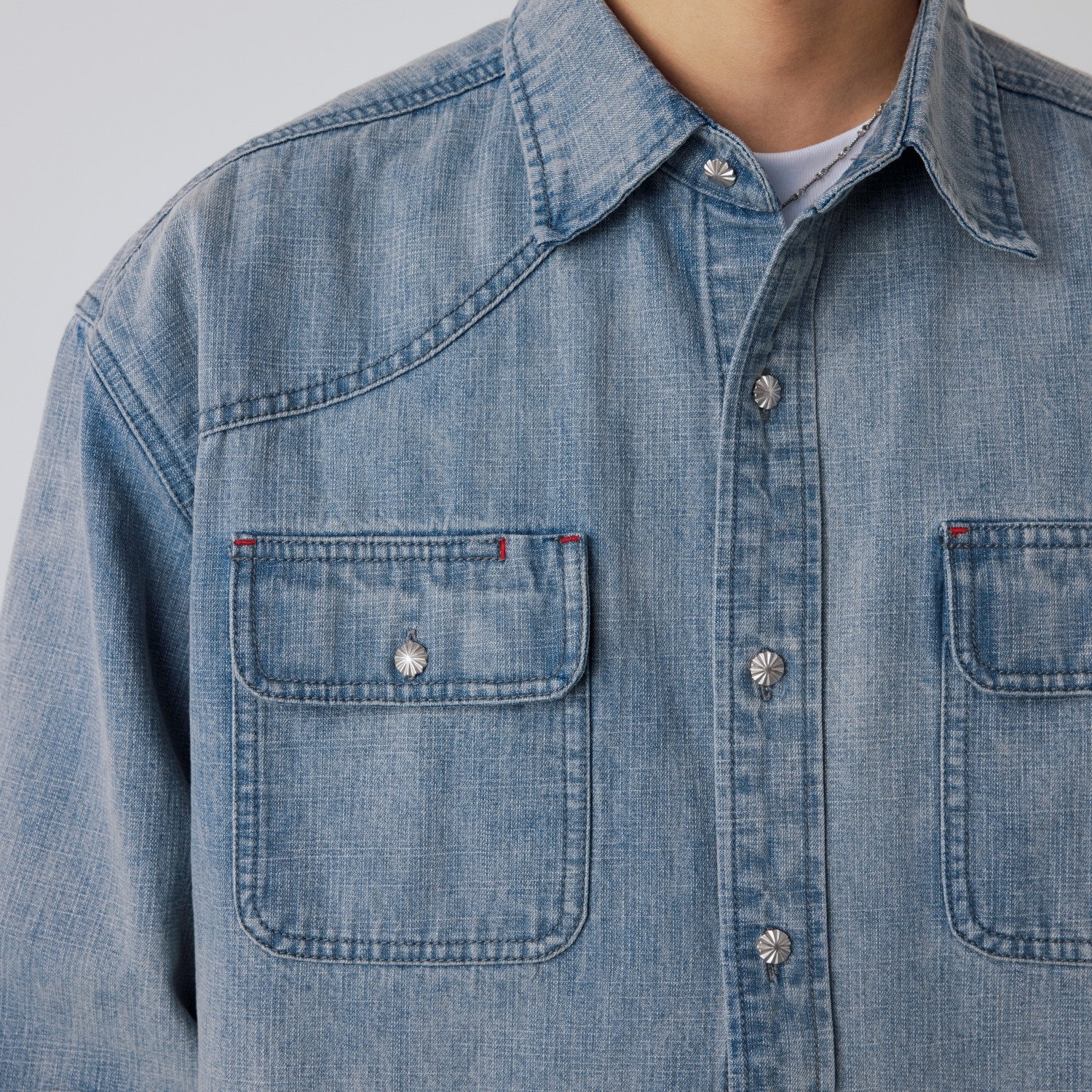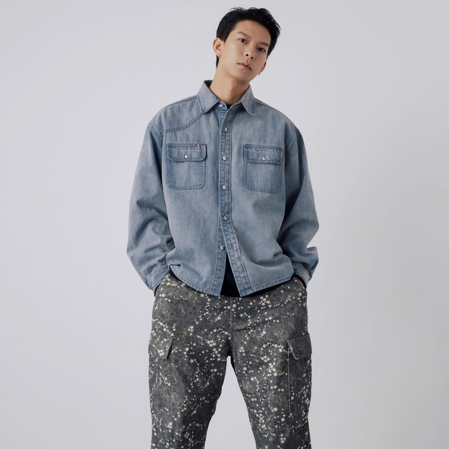 淘宝PAXOM 秋季重磅牛仔长袖衬衫宽松立体剪裁廓形衬衣外套青春休闲男
