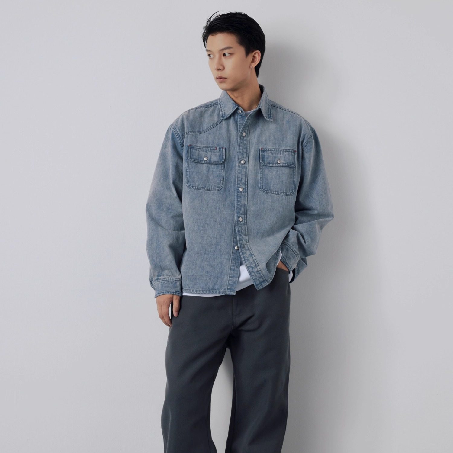 MRCYC长袖衬衫男士秋季韩系宽松潮流休闲高级感百搭牛仔衬衣外套
