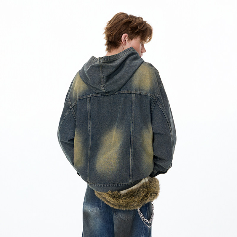 弎狸TIP日系复古经典原色牛仔外套男女潮流百搭连帽拉链夹克上衣