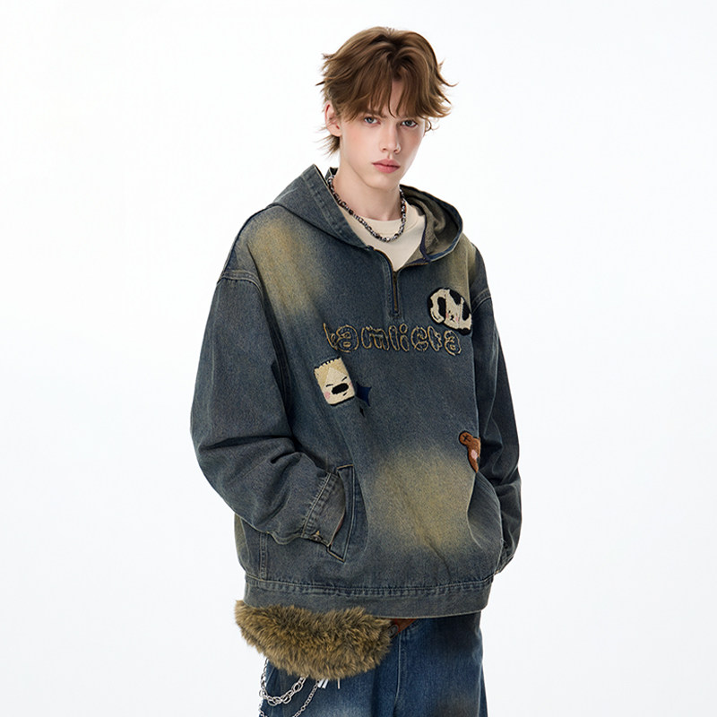 LAMLICKA蓝色美式水洗半拉链牛仔外套,融合复古潮流与现代休闲风格,专为秋冬打造。采用高品质水洗牛仔面料,质感挺括且亲肤舒适,经过特殊水洗工艺呈现自然做旧效果,彰显美式复古韵味。宽松版型设计,搭配连帽元素,增添街头潮流感,兼具防风保暖功能。半拉链门襟穿脱便捷,袖口与下摆罗纹收口,细节精致。无论是搭配卫衣、T恤或长裤,都能轻松驾驭日常出街、校园或聚会场景,展现随性不羁的型男魅力。LAMLICKa以独特设计语言,诠释当代男性自由穿搭态度。