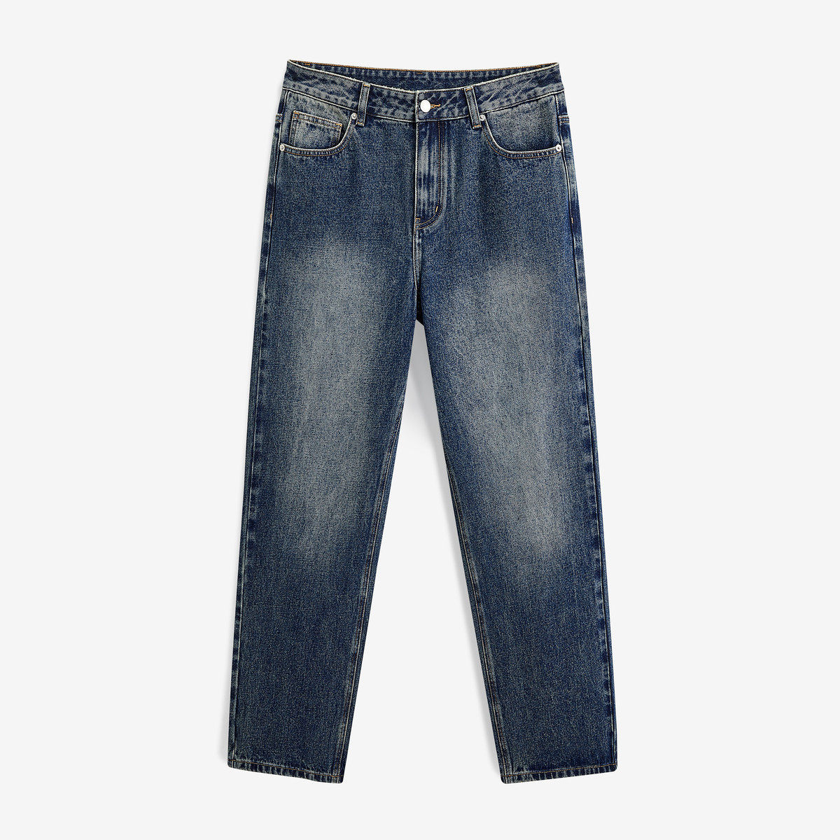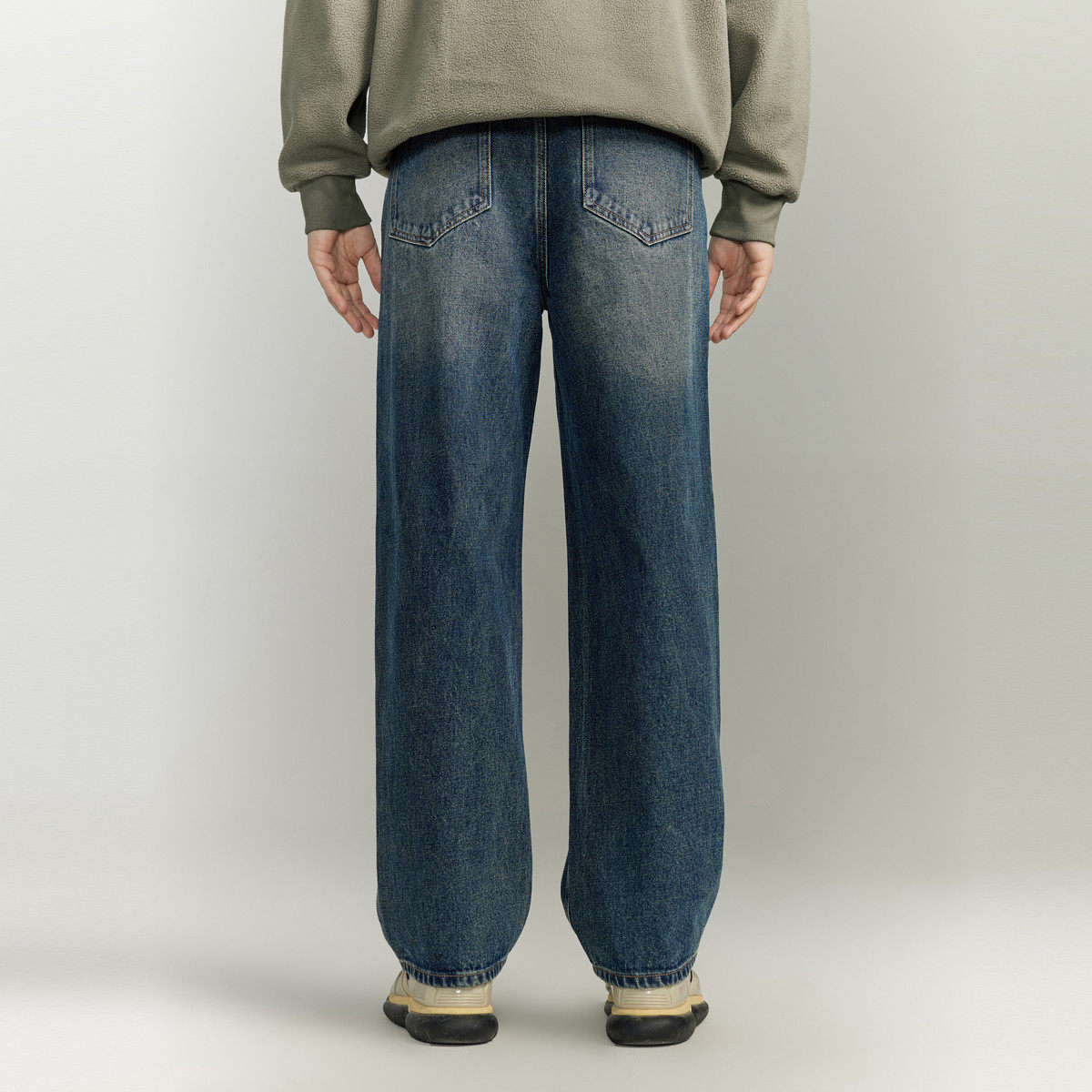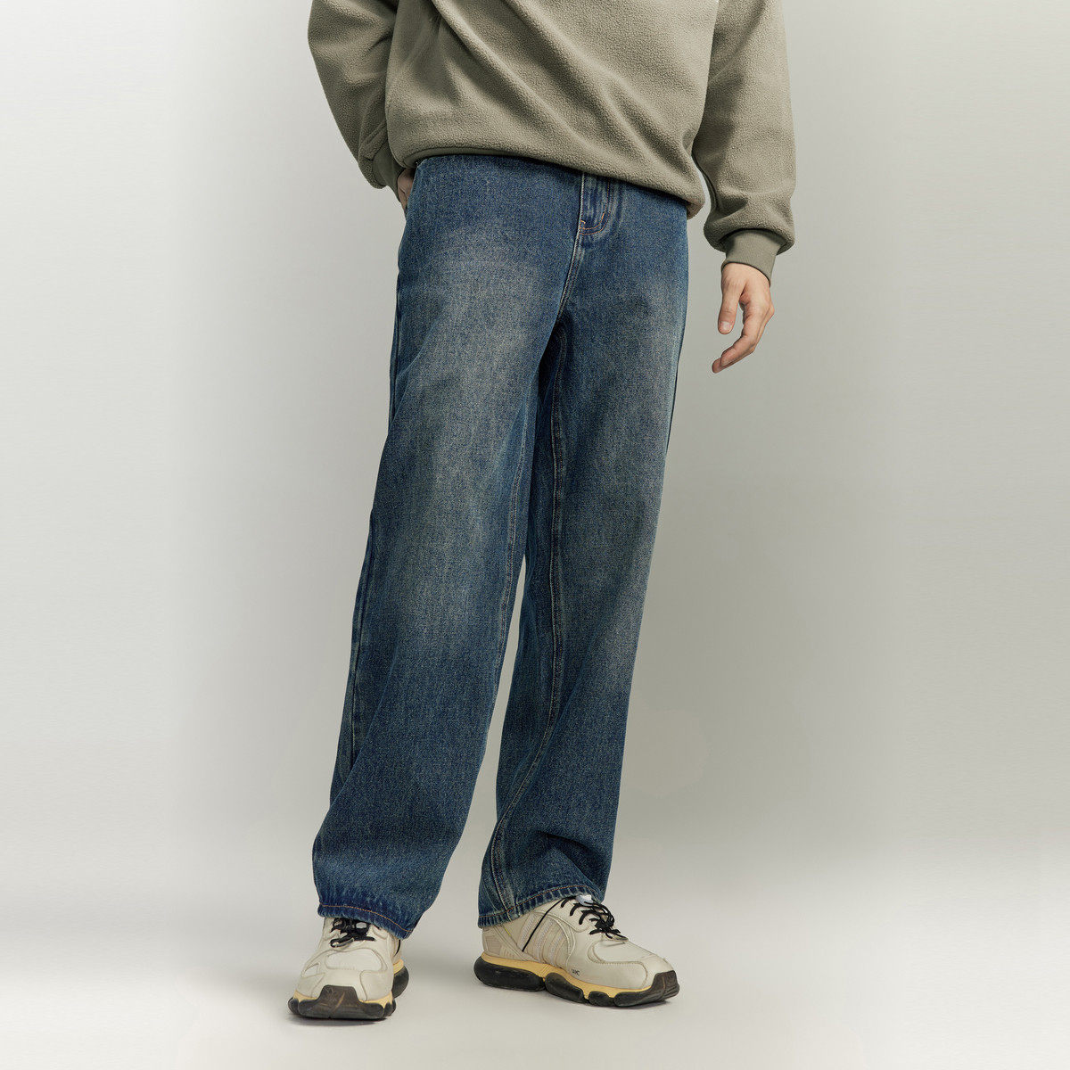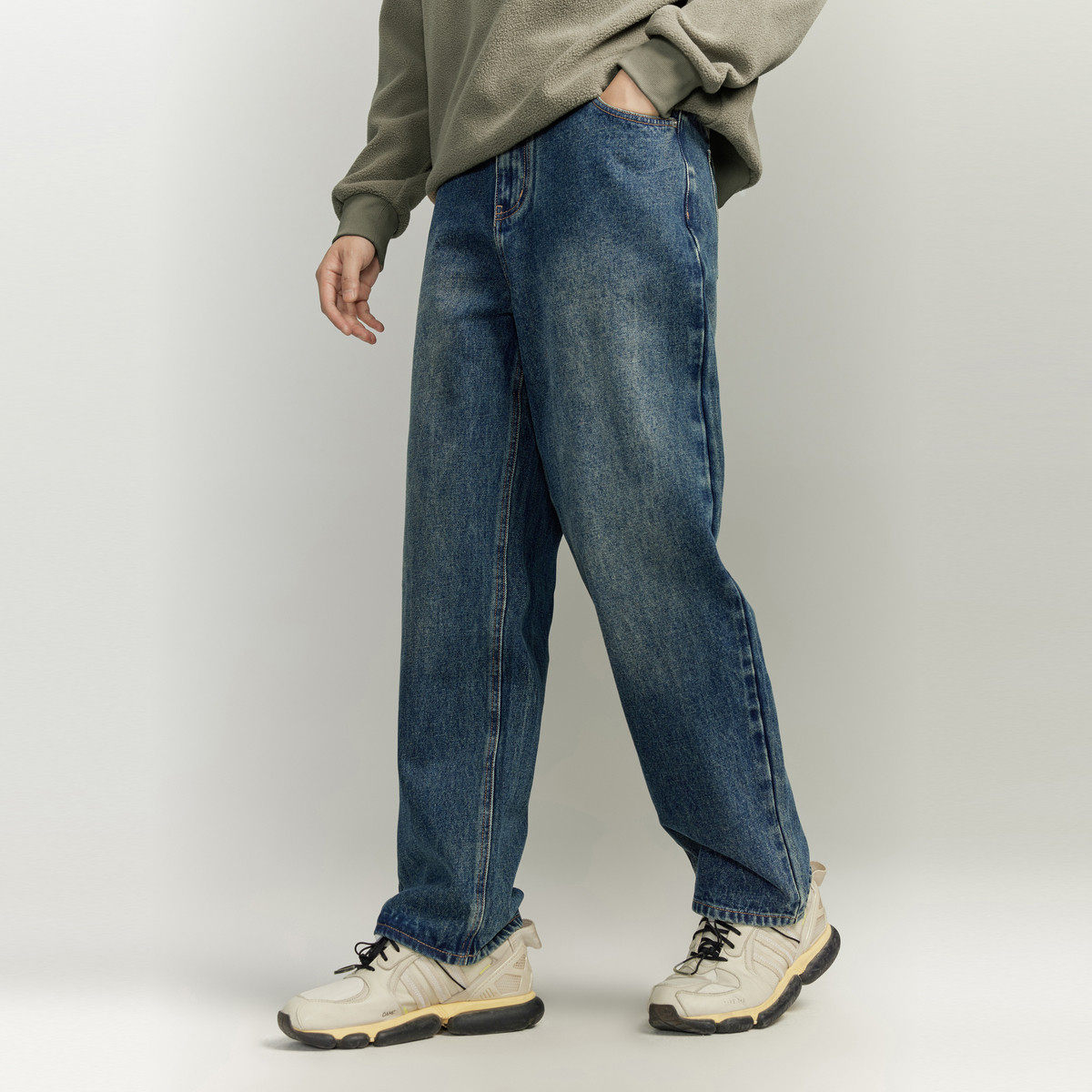 @港仔文艺男 做旧水洗牛仔裤男秋冬男生日系复古宽松阔腿休闲裤子