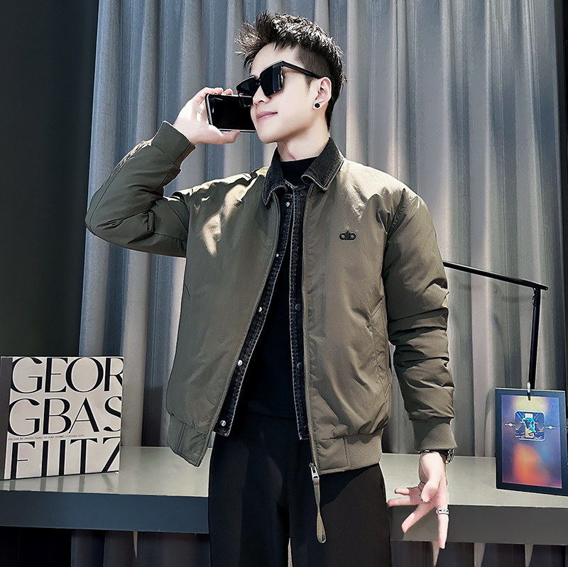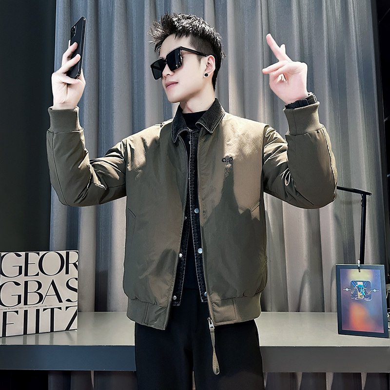 秋冬牛仔棉衣男士加绒加厚大码保暖外套韩版帅气百搭简约夹克上衣