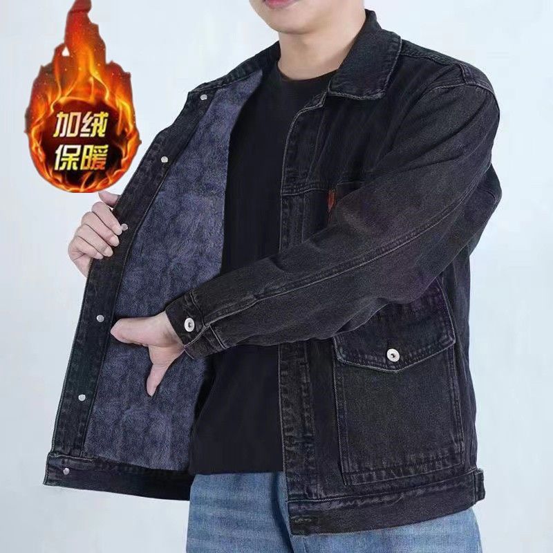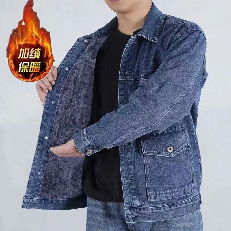 秋冬牛仔棉衣男士加绒加厚大码保暖外套韩版帅气百搭简约夹克上衣