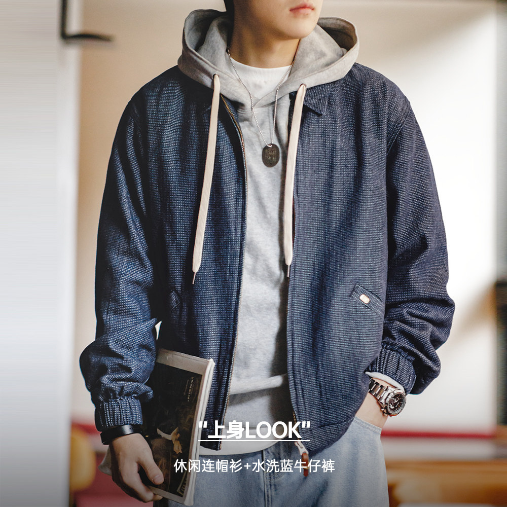 天猫马登工装 美式复古牛仔boxy教练夹克cityboy宽松翻领外套男秋季
