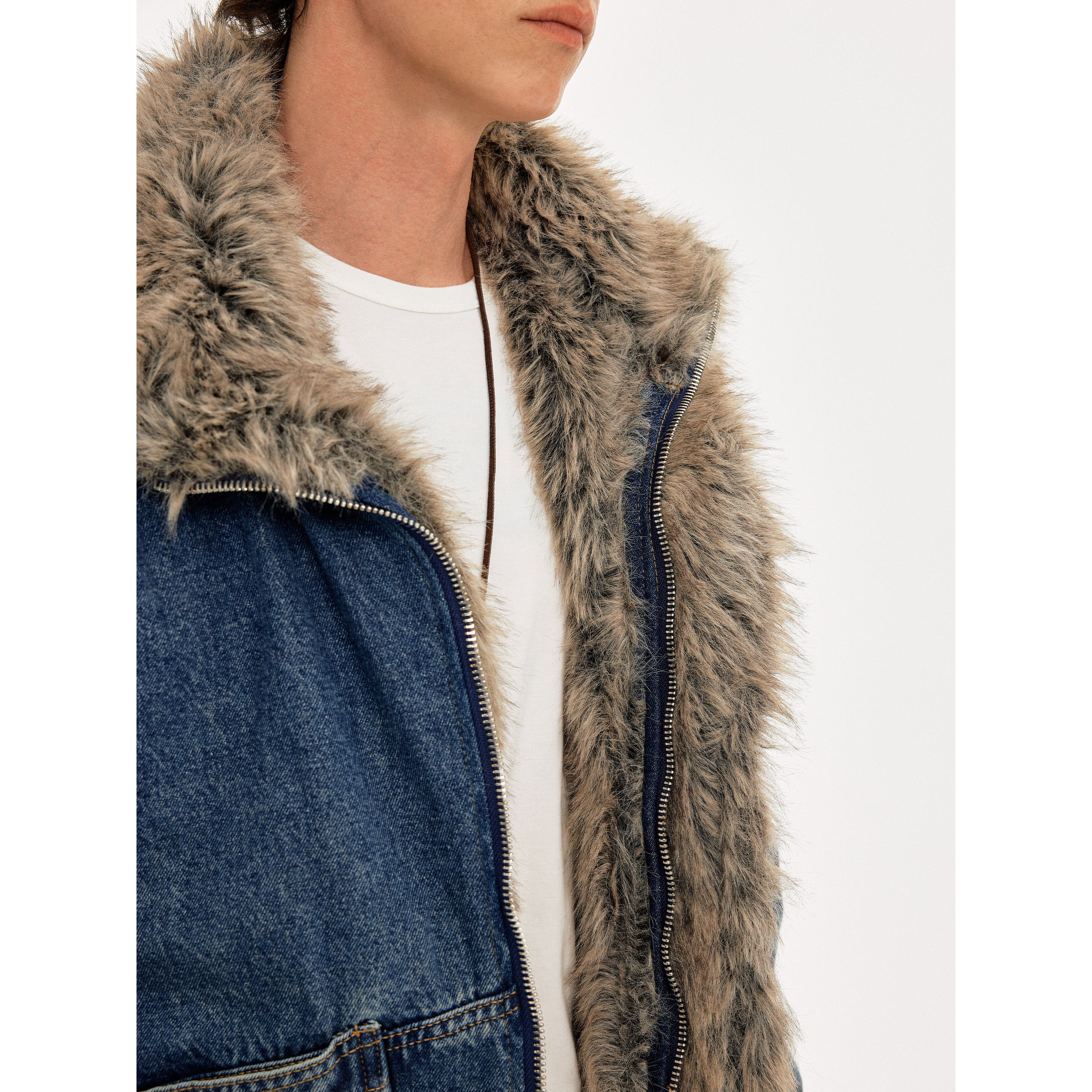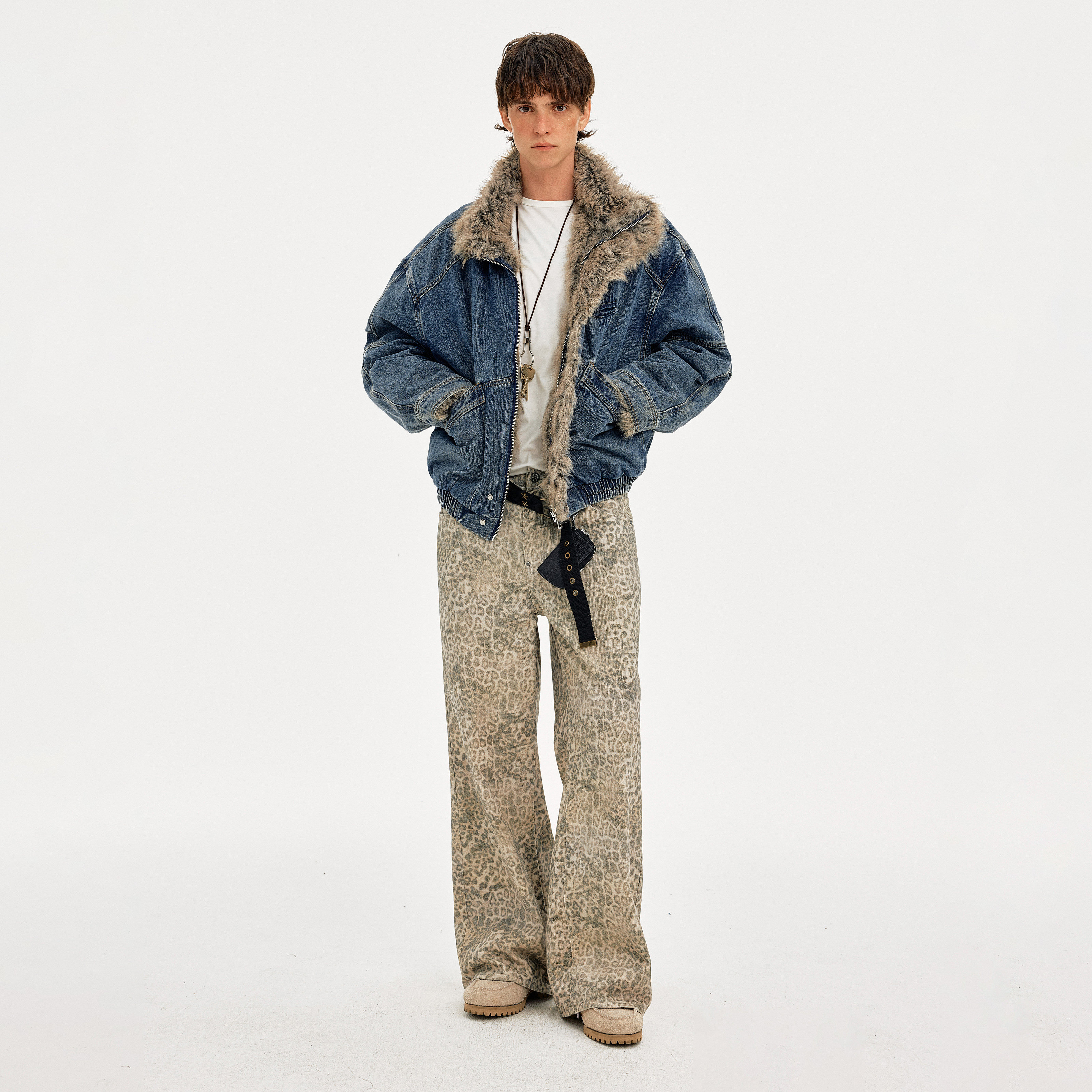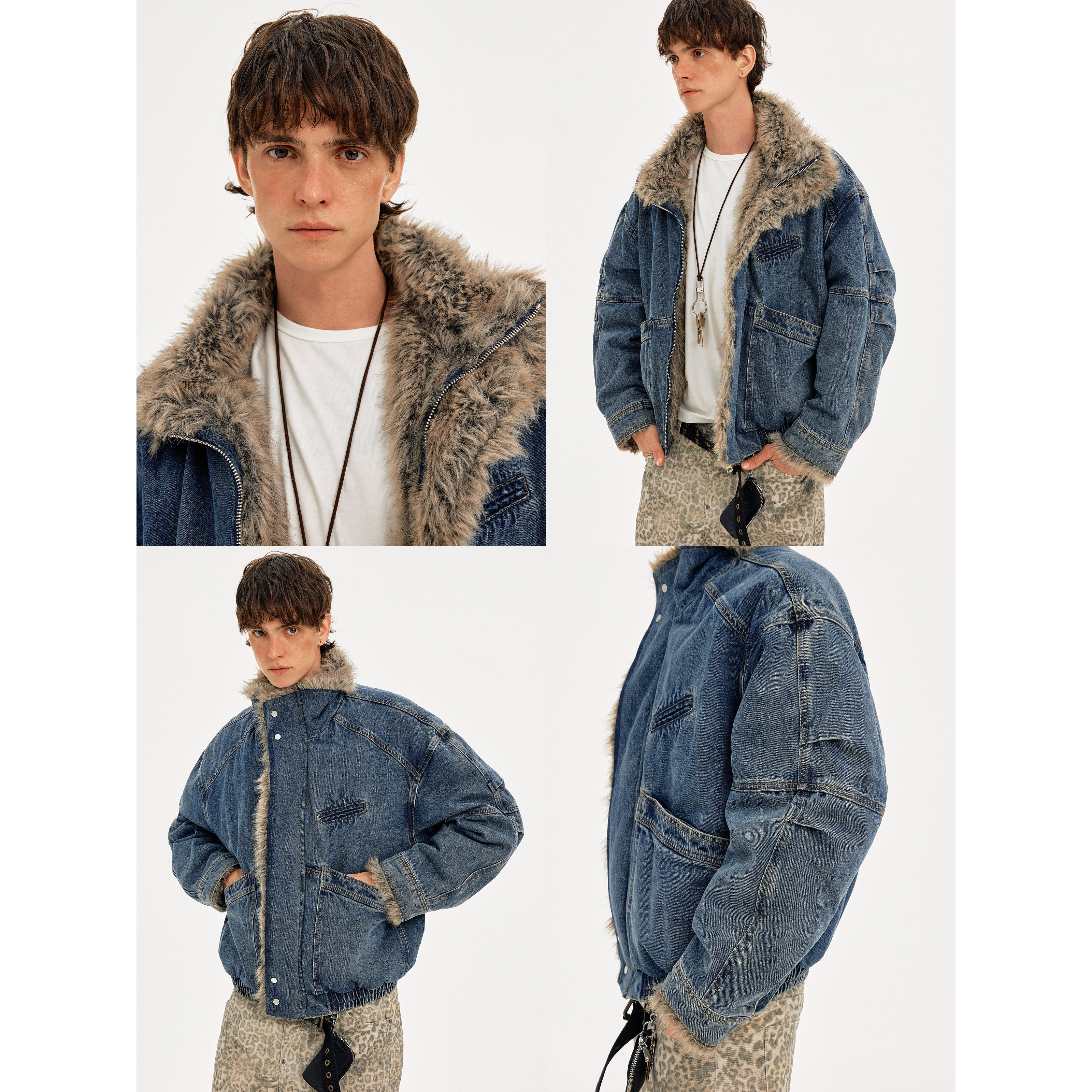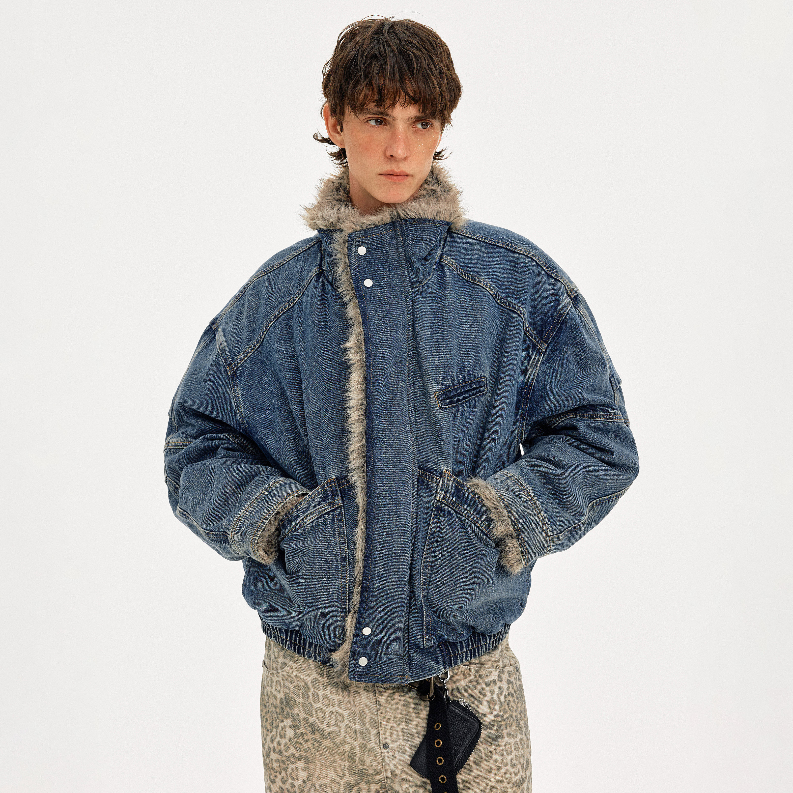 淘宝MADWITCH复古解构水洗设计感牛仔棉服男女冬季保暖座山雕毛领外套