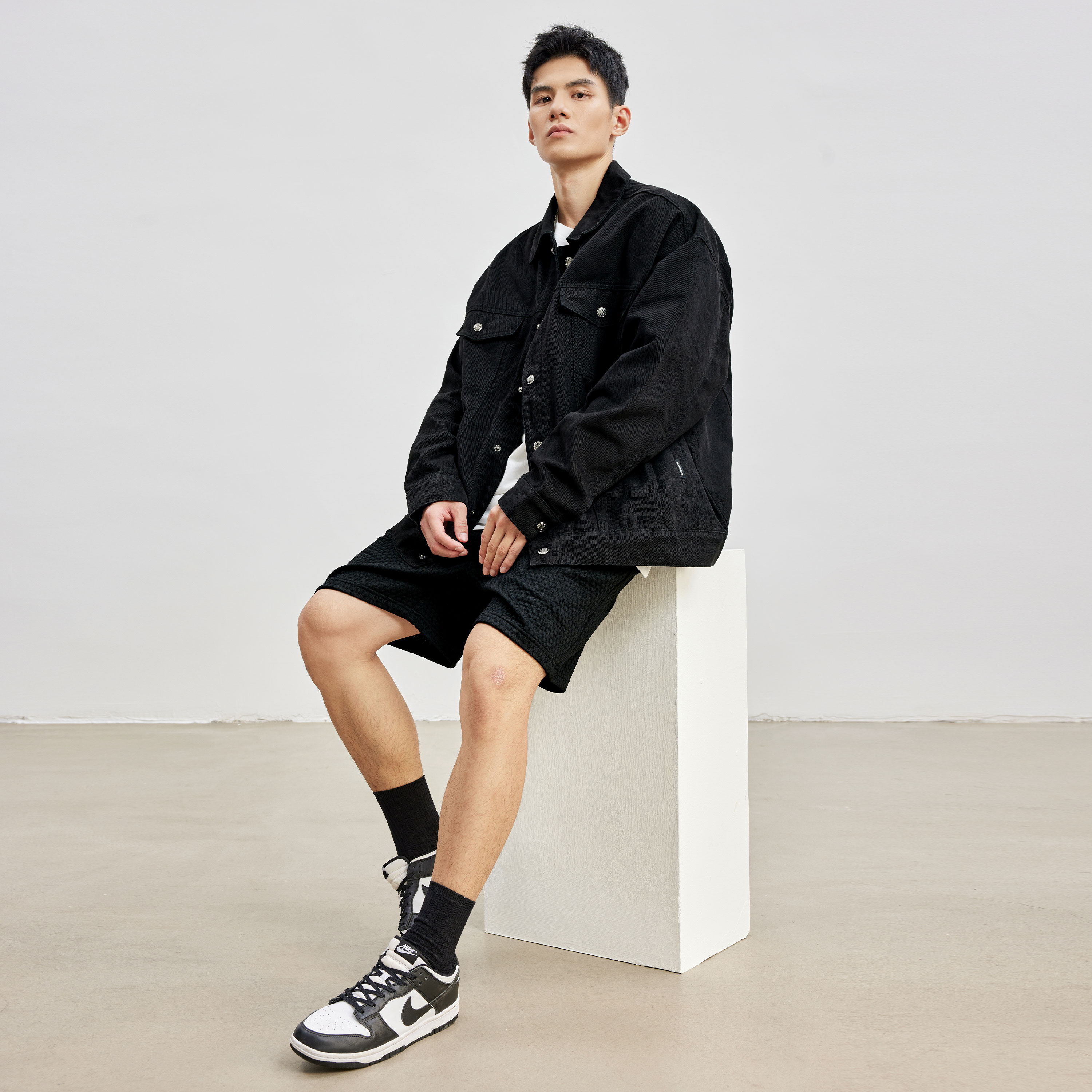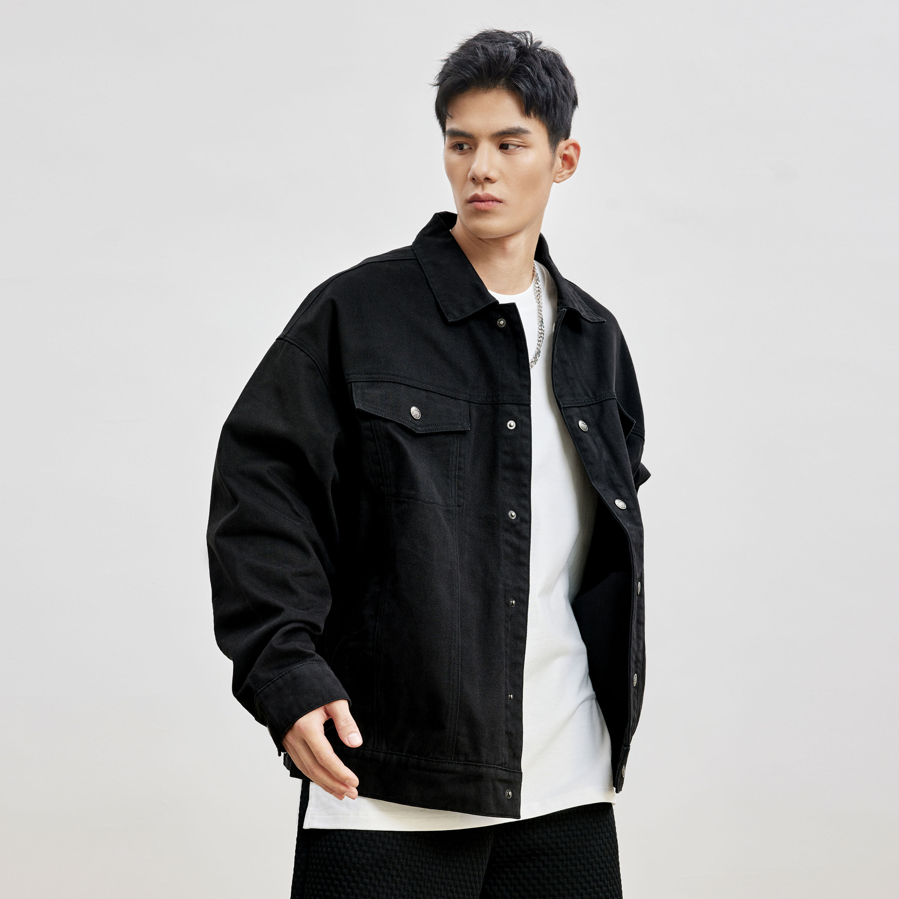 天猫bdpowerup秋季休闲复古夹克外套男生宽松简约黑色牛仔外套男士潮