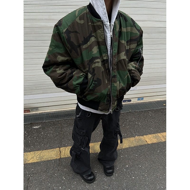 淘宝双面穿冬季美式高街飞行服bomber两面穿迷彩服宽松保暖厚棉衣男女