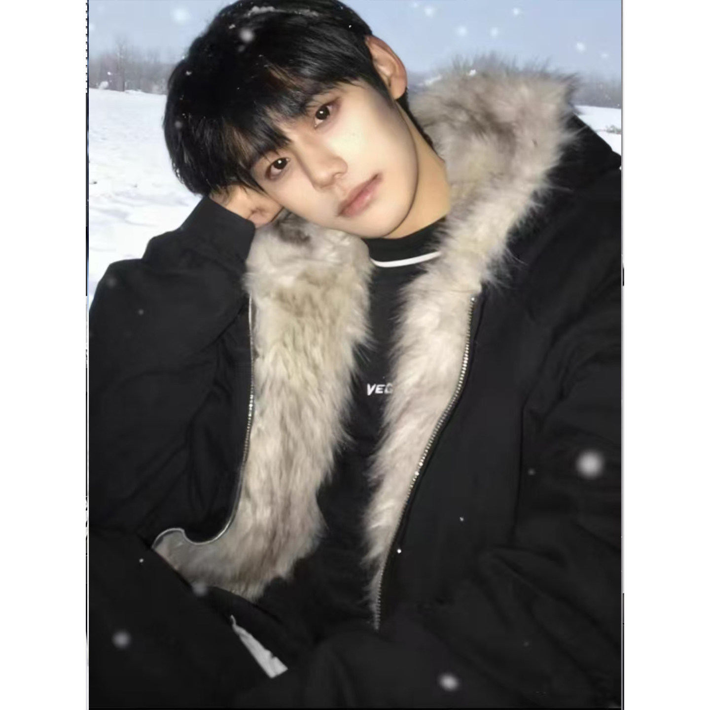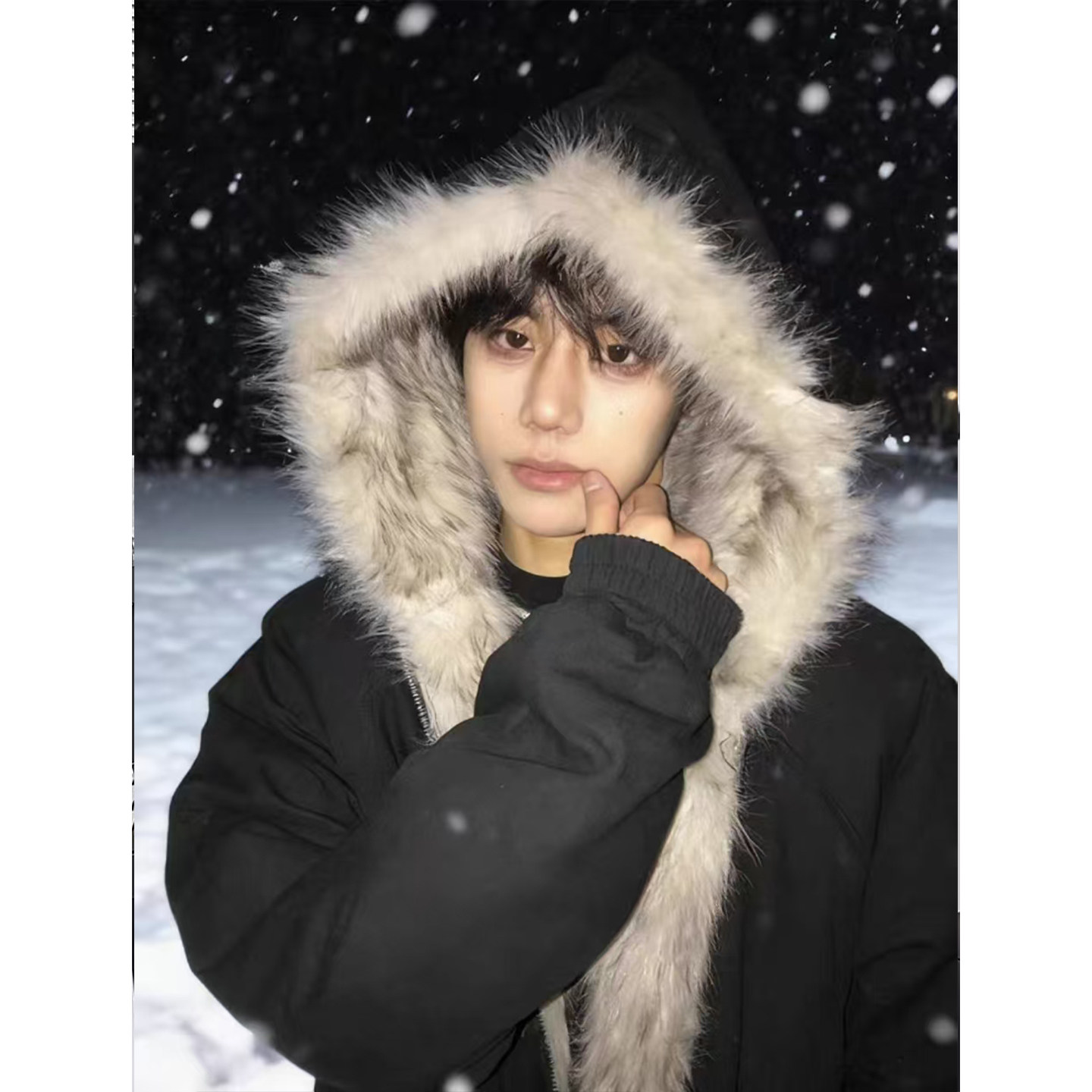 天猫cleanfit座山雕毛领棉服男冬季加绒加厚保暖外套美式短款棉衣夹克
