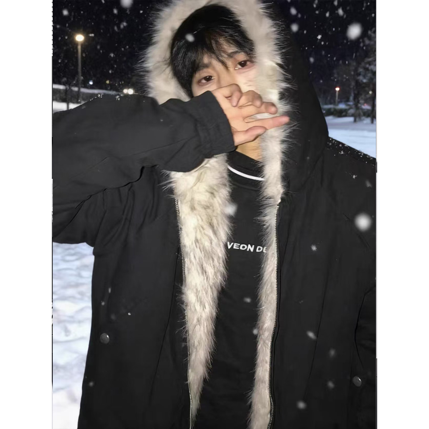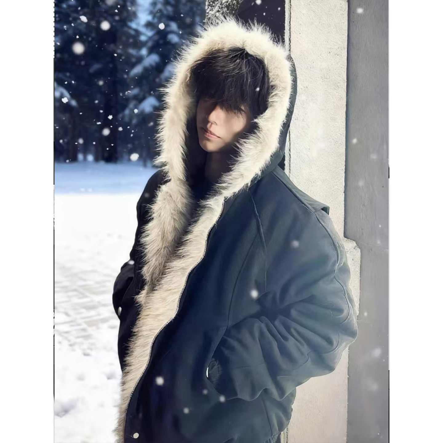 羽绒服男中长款冬季2025年新款青年潮流派克棉服男装加绒加厚外套