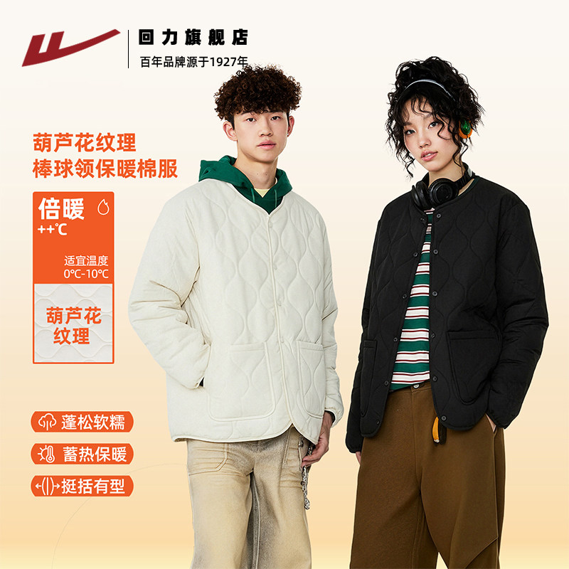 天猫回力棒球领棉服男冬季宽松加绒保暖棉衣青少年蓄热防寒外套百搭K