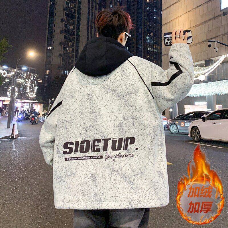 白色棉衣男冬季加绒加厚保暖羽绒服棉服外套男生情侣款美式棉袄子