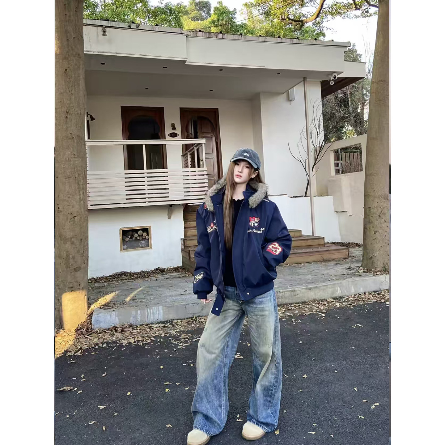 淘悟空有货潮牌美式座山雕加厚毛领棉服男冬季复古保暖情侣百搭棉衣