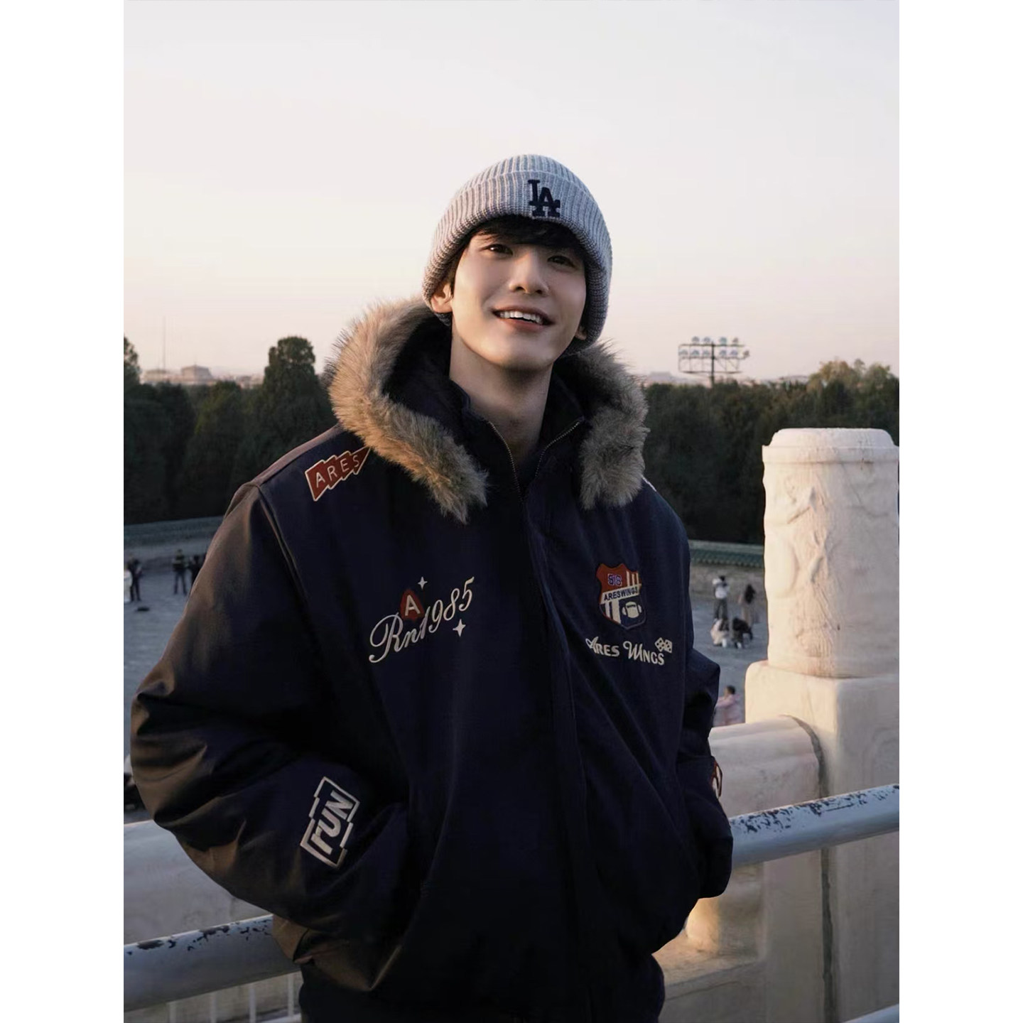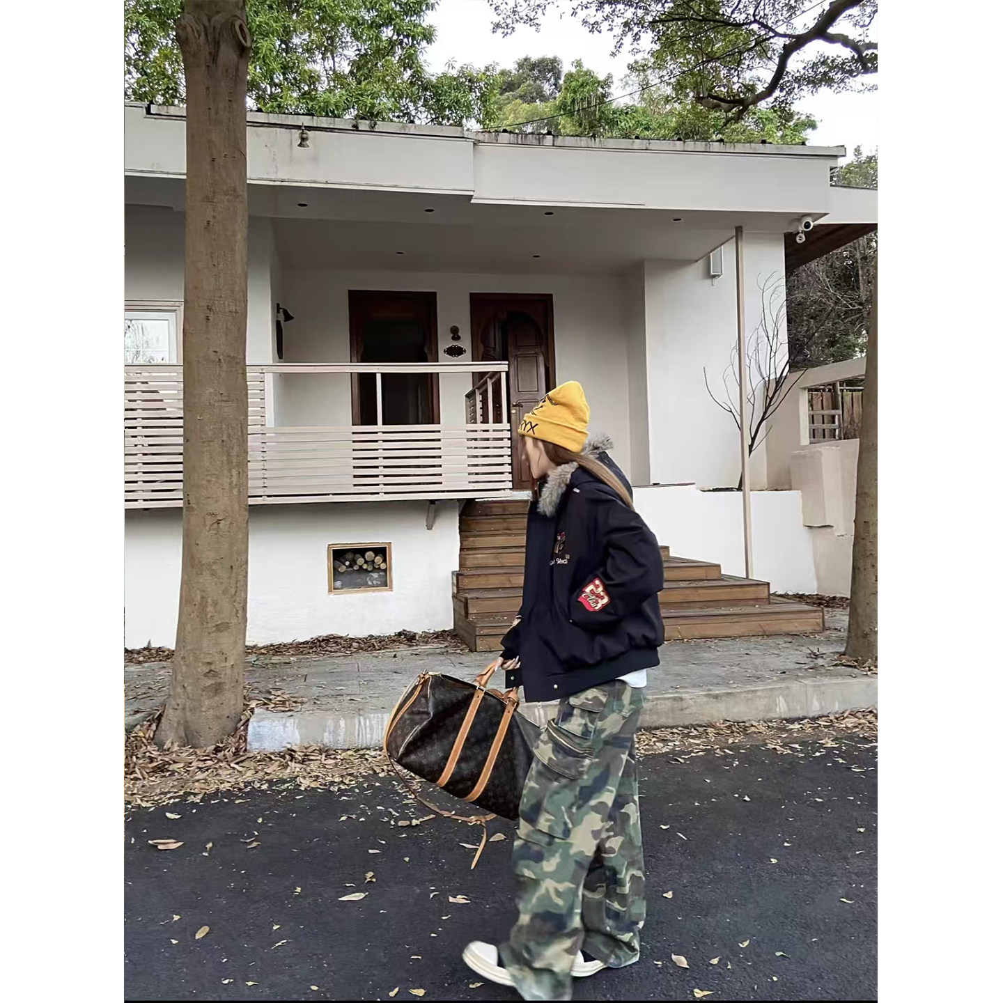天猫美式复古刺绣徽章宽松座山雕棉衣外套男女冬季小众加厚保暖夹克潮