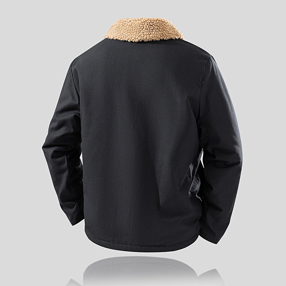 罗蒙含亚麻秋冬仿羊羔绒毛领加绒夹克,是一款兼具保暖与时尚的经典男装外套。采用优质含亚麻面料,透气舒适,挺括有型,内里加绒设计有效锁温,适合秋冬季节穿着。翻领搭配仿羊羔绒大毛领,不仅提升整体质感,更添几分硬朗与儒雅气质。夹棉填充均匀厚实,轻盈保暖不臃肿。立体剪裁贴合身形,袖口与下摆细节精致,兼顾实用与美观。多口袋设计方便置物,满足日常出行需求。无论是通勤、休闲还是户外,这款棉服都能轻松驾驭,展现男士沉稳而不失潮流的穿搭风格,是秋冬衣橱的必备单品。