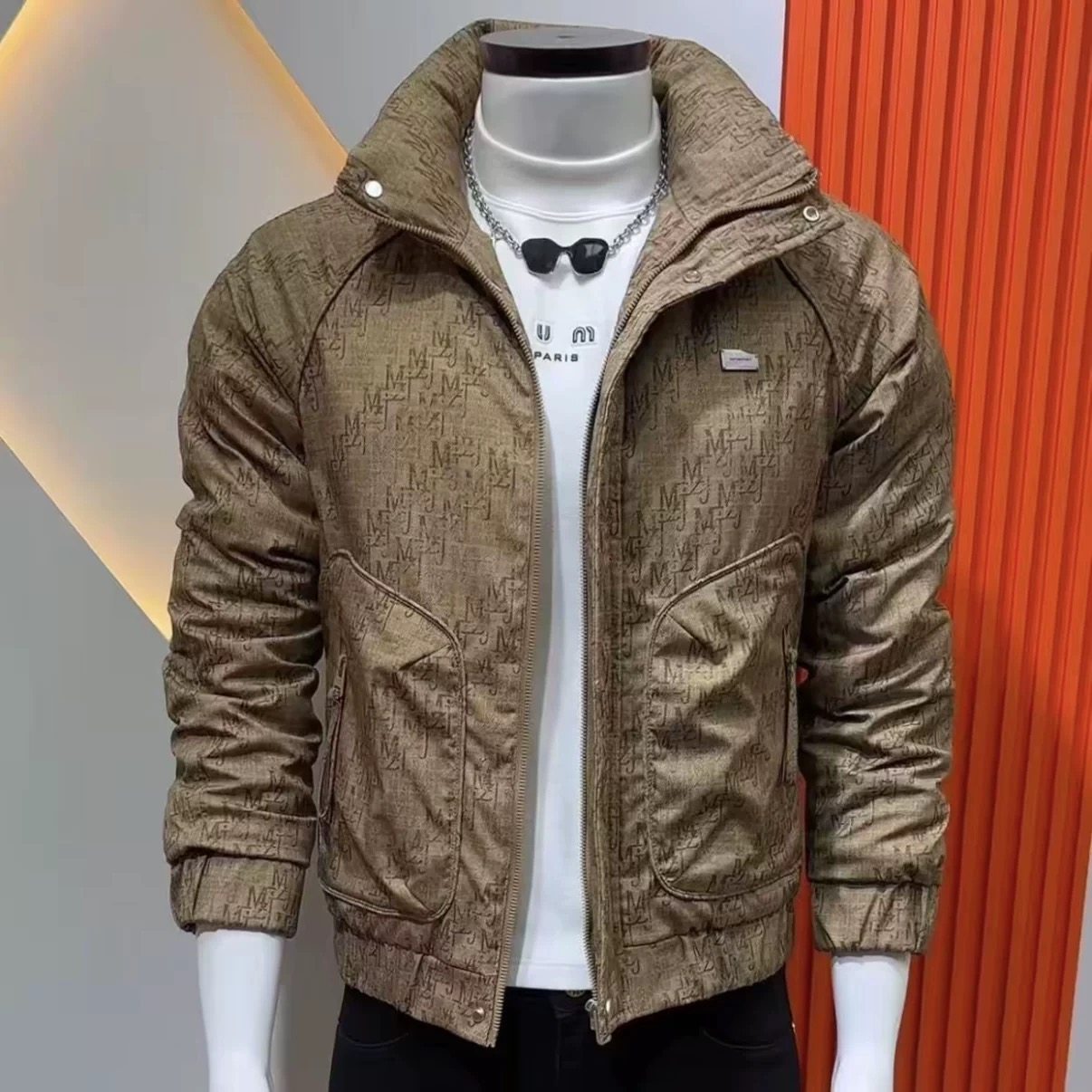 淘宝潮牌高级感字母印花立领棉衣男修身百搭时尚潮流痞帅棉袄男装棉服
