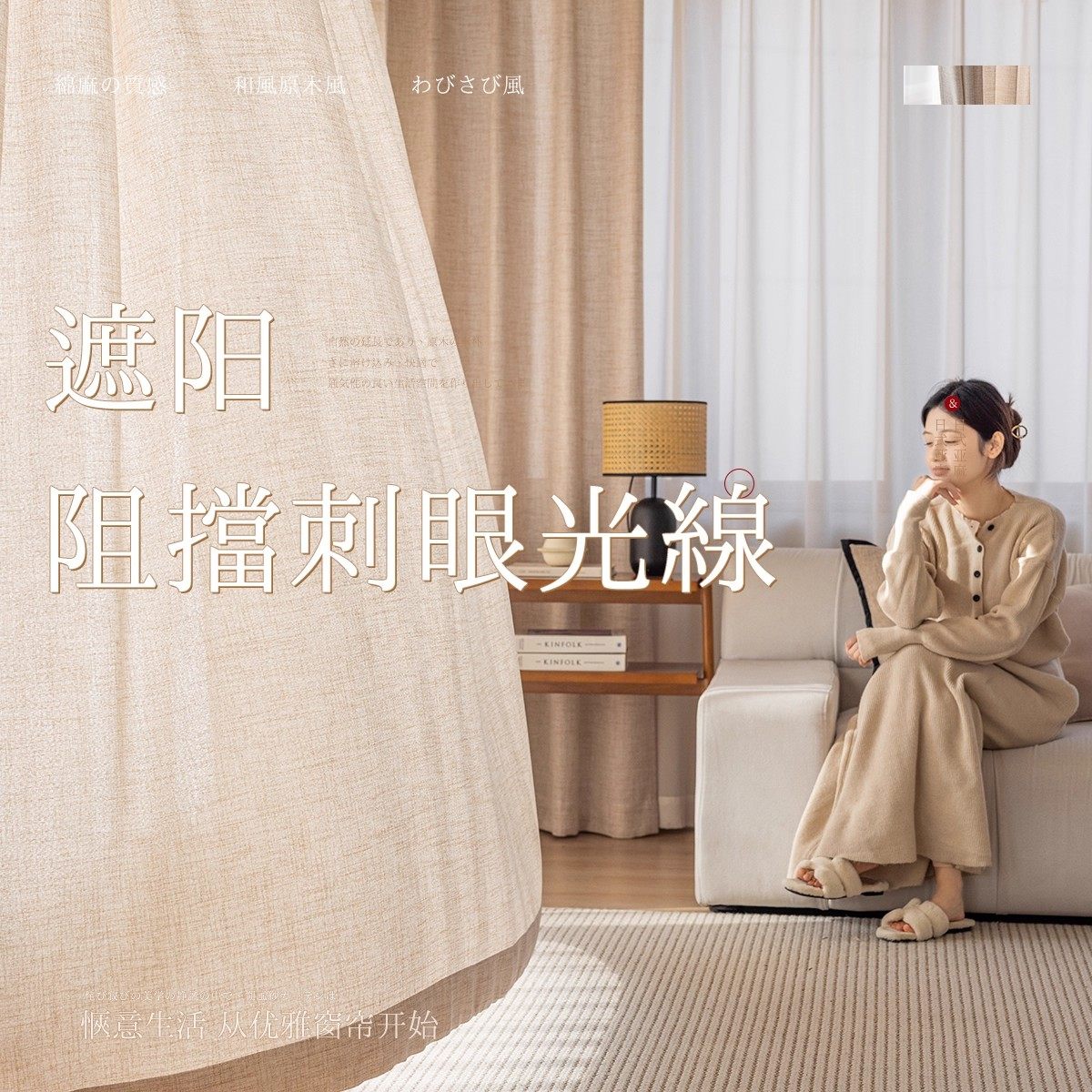 淘8H日式除甲醛遮光防晒窗帘卧室阳台客厅遮阳遮影窗纱免打孔安装