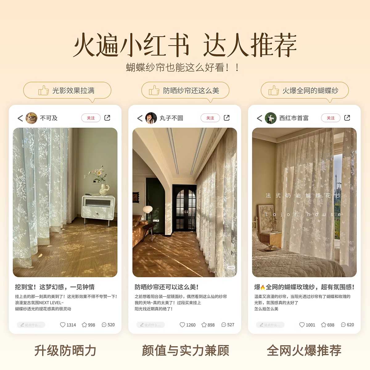 淘宝蝴蝶纱法式浪漫窗帘遮光2025新款客厅飘窗透光不透人高级感窗纱帘