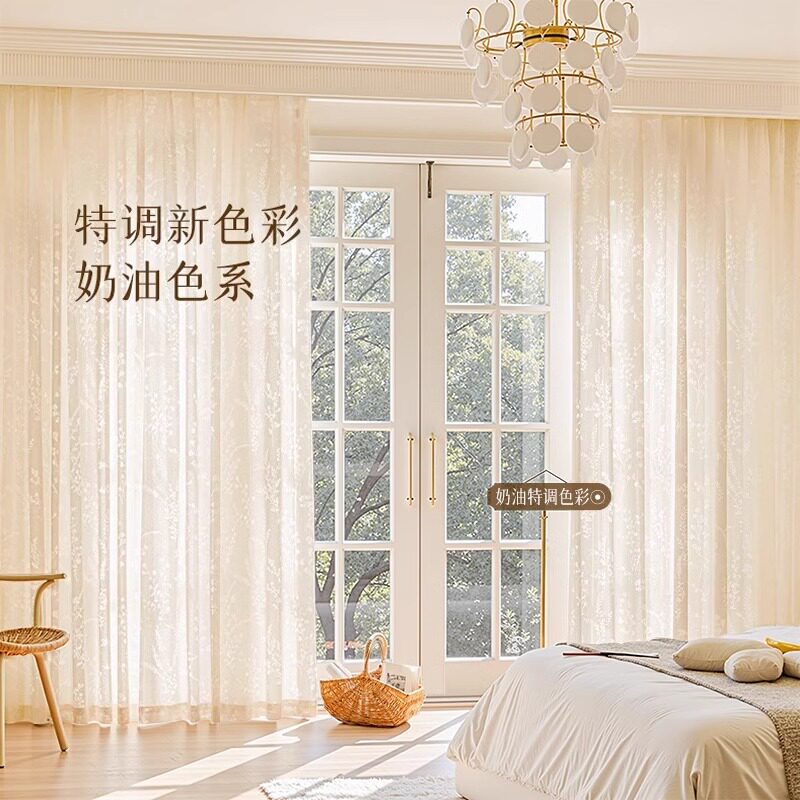 淘月枝影窗纱法式客厅卧室阳台奶油色高级感镂空公主风绍兴柯桥纱帘