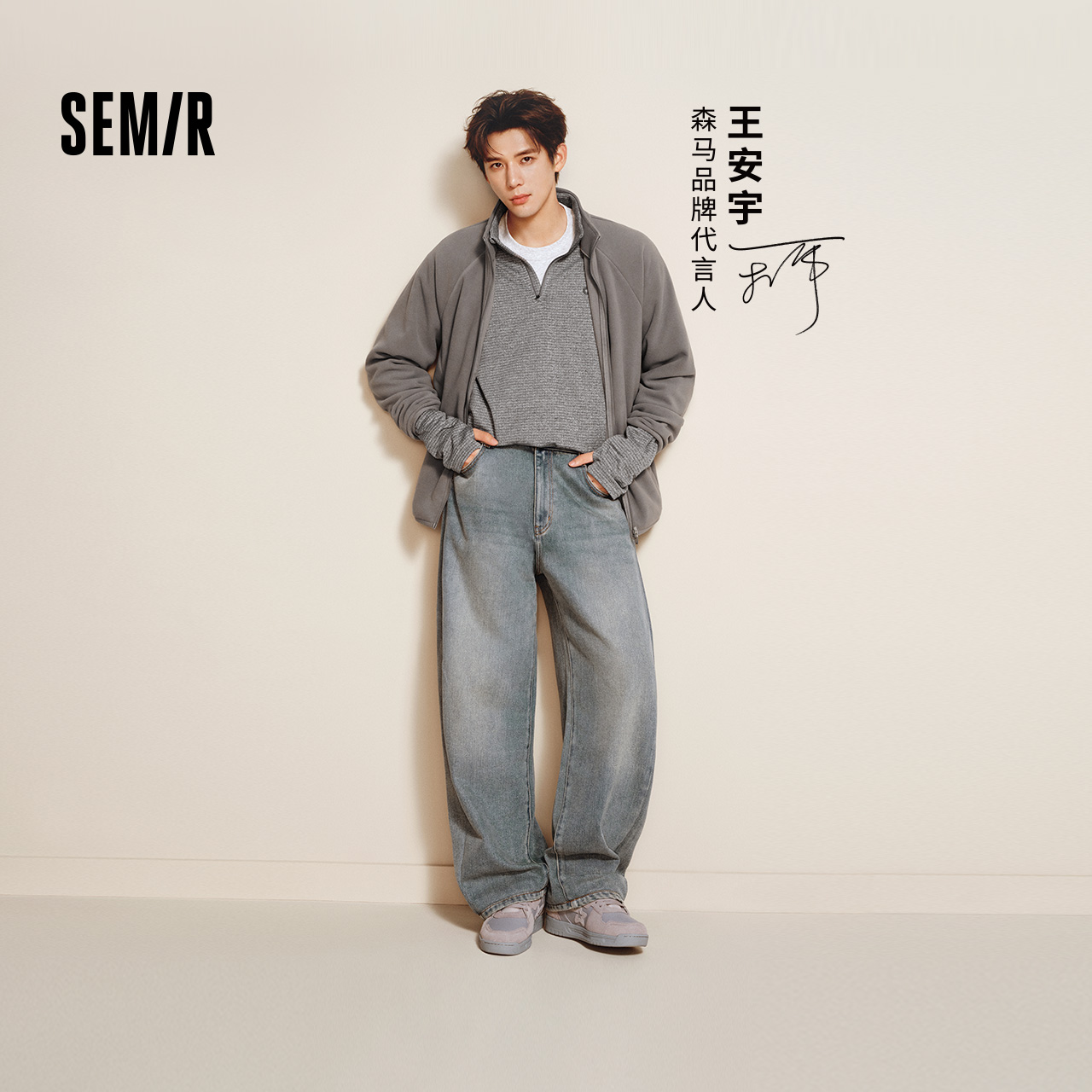 淘宝王安宇同款森马牛仔裤男做旧复古阔感弯刀裤宽松长裤2025冬季新款