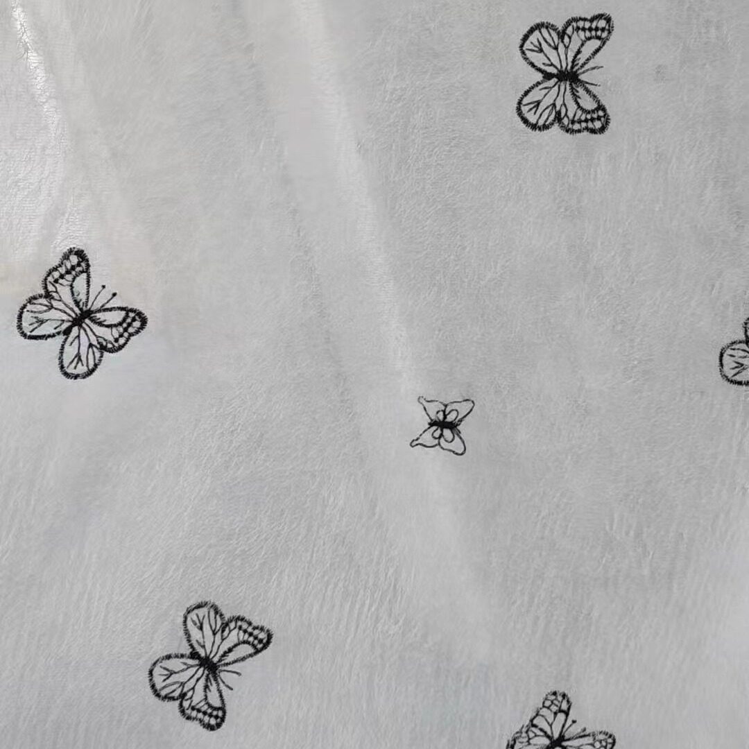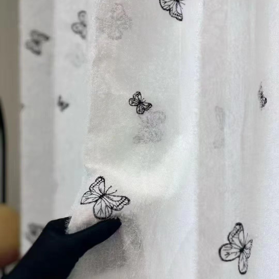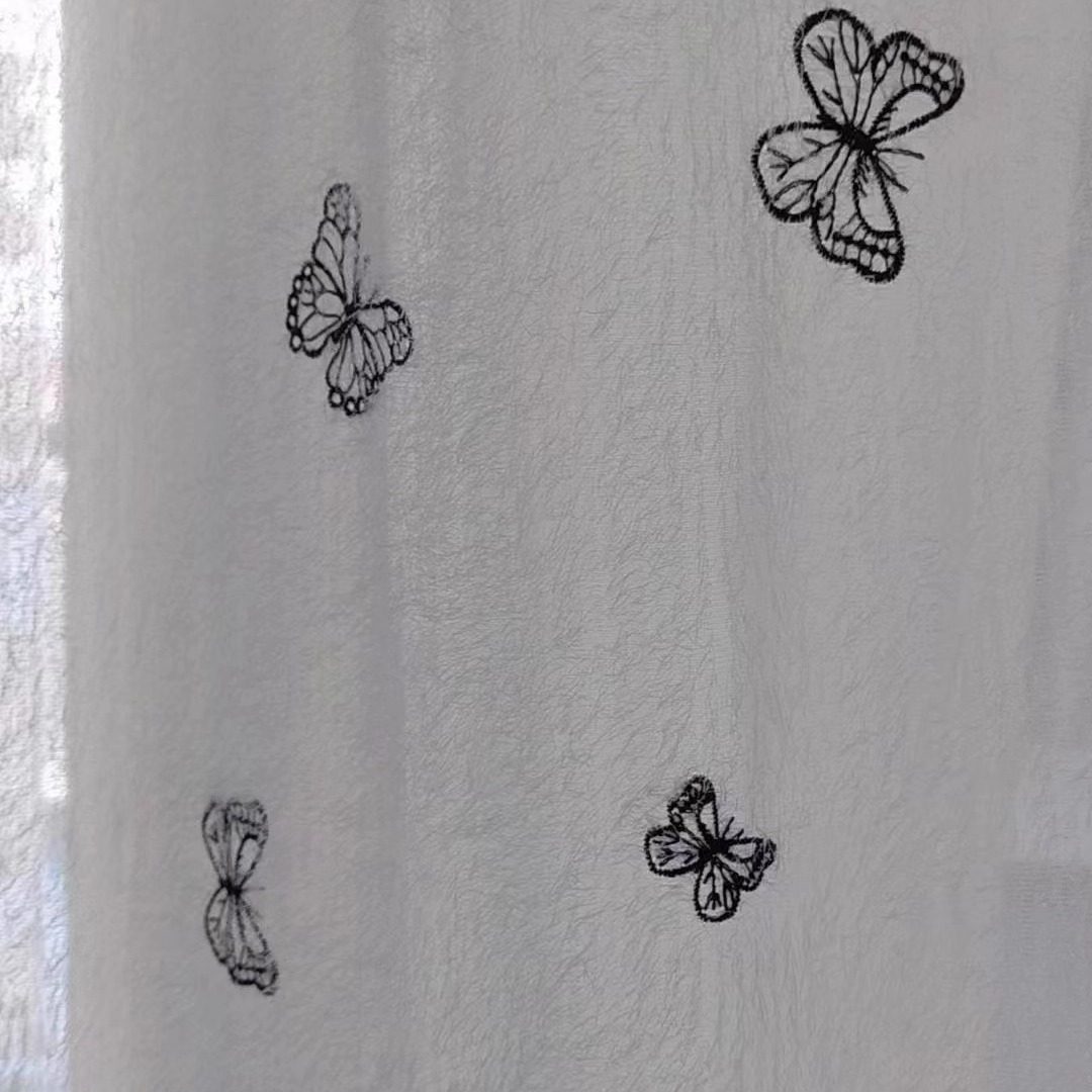 淘宝绣花蝴蝶纱帘透光窗纱白色毛绒纱客厅卧室阳台遮阳防晒纱成品窗帘