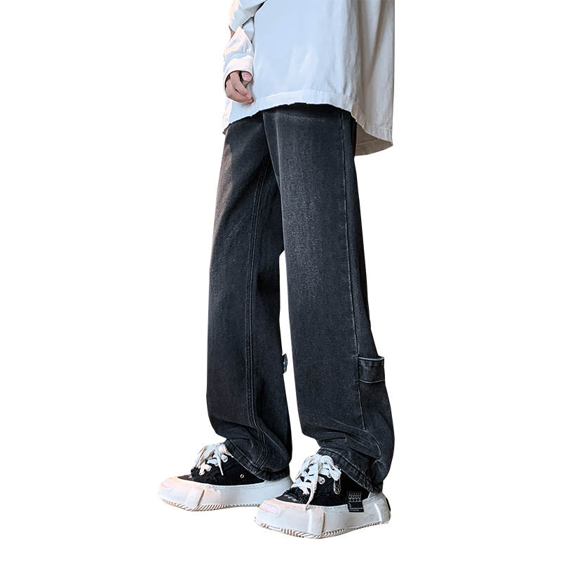 天有志者UZIS美式牛仔裤男款复古水洗阔腿裤休闲宽松运动长裤[2021M