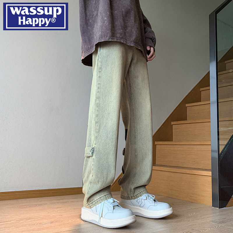 淘宝wassup happy美式高街牛仔裤男春秋冬季新款加绒宽松直筒休闲裤子