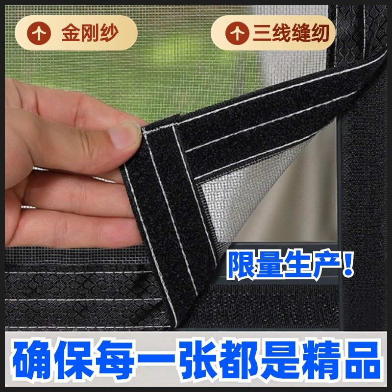 淘定制家用防蚊纱窗网自装魔术贴纱窗纱网自粘式窗户简易内开窗沙帘