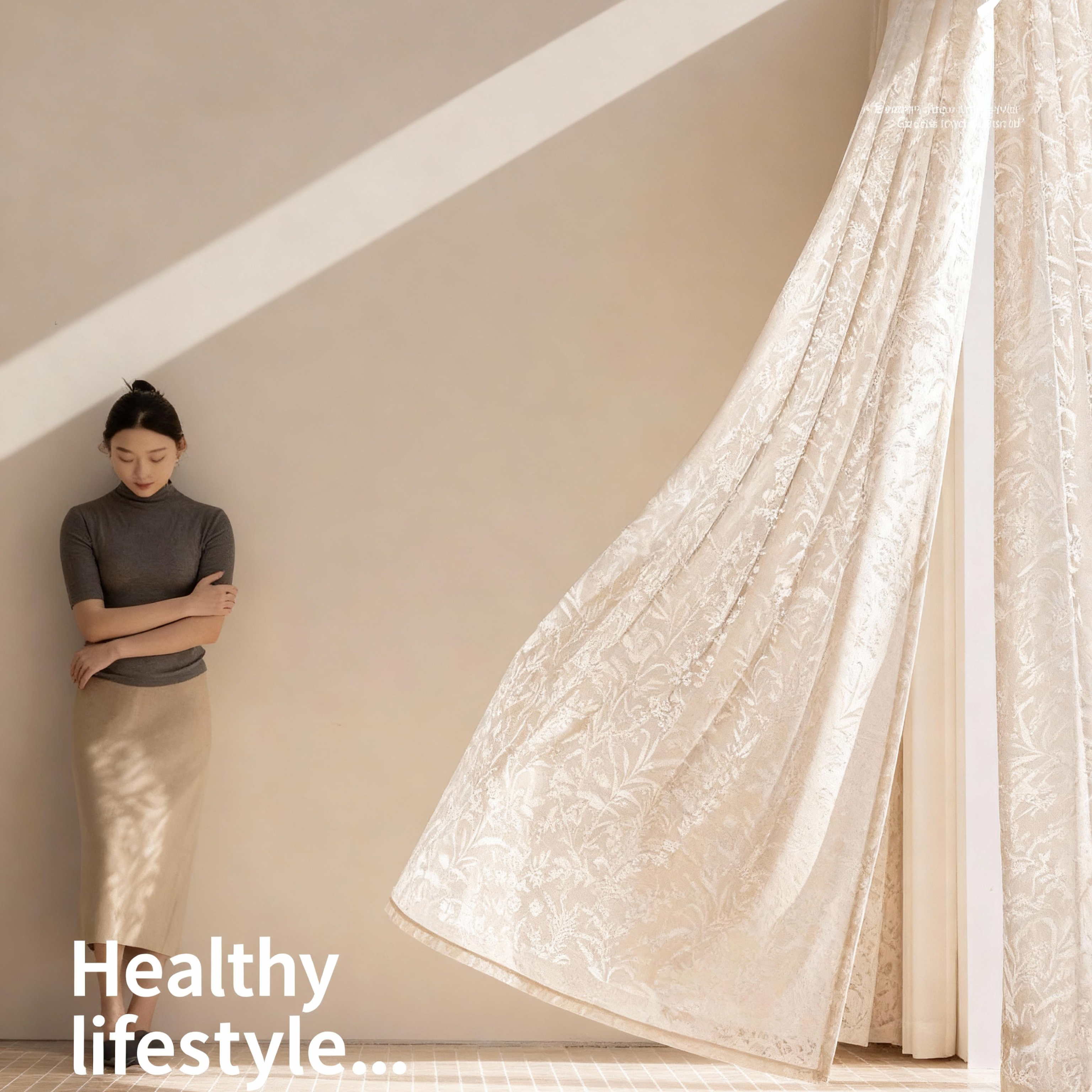 淘8H日式除甲醛遮光防晒窗帘卧室阳台客厅遮阳遮影窗纱免打孔安装