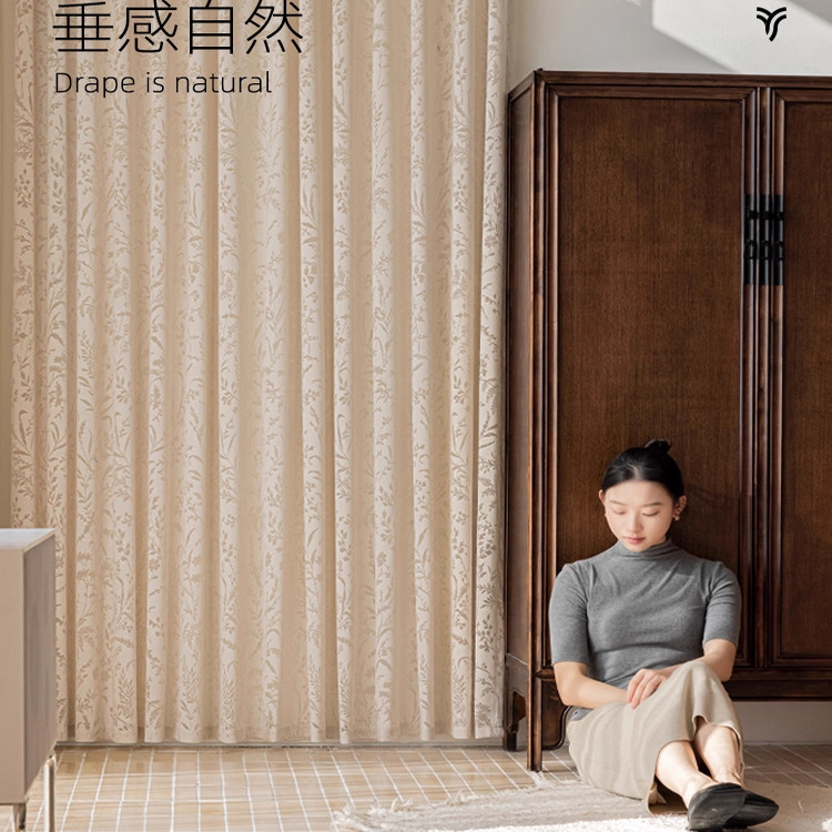 淘月枝影窗纱法式客厅卧室阳台奶油色高级感镂空公主风绍兴柯桥纱帘