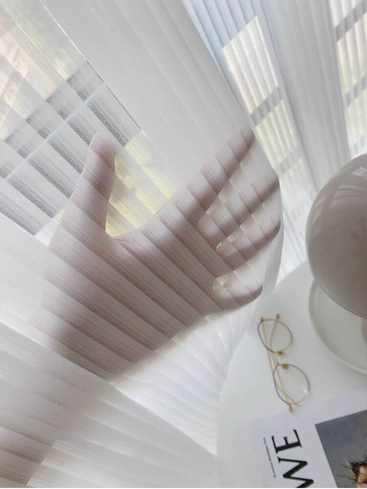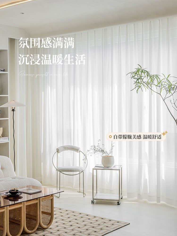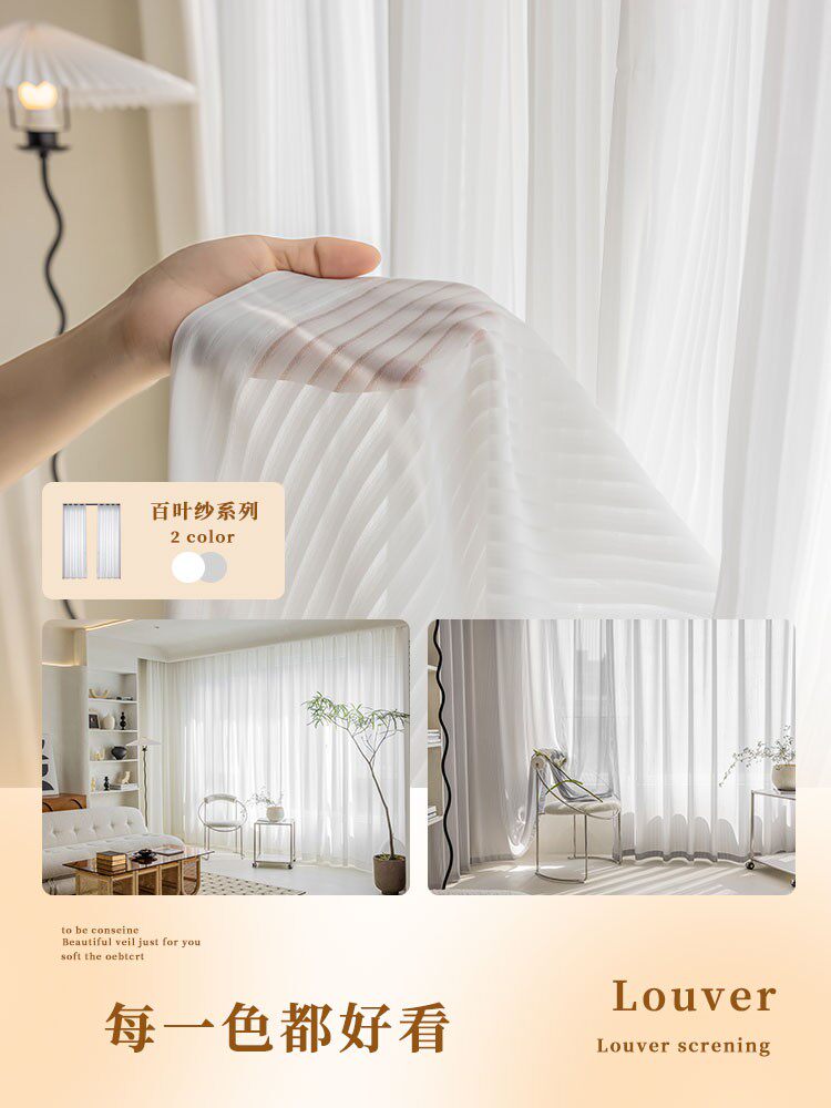 淘宝网红竖百叶纱帘白纱窗帘雪纺纱卧室飘窗透光不透人白色窗纱梦幻帘