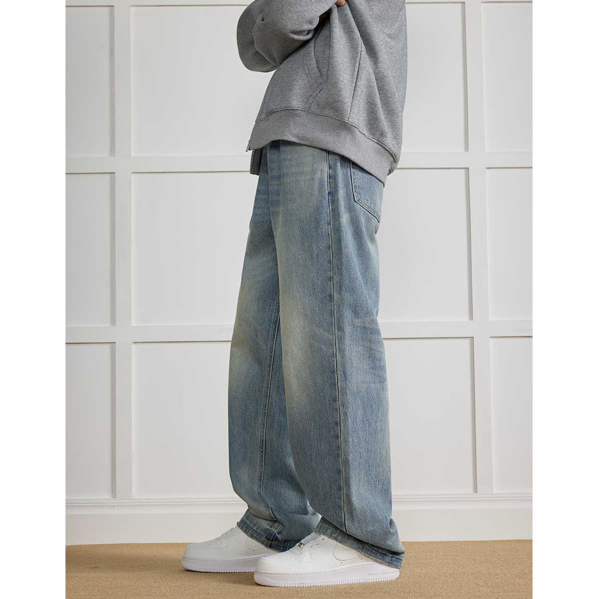 淘马登工装美式复古丹宁水洗牛仔裤直筒中腰锥形宽松哈伦长裤子男秋