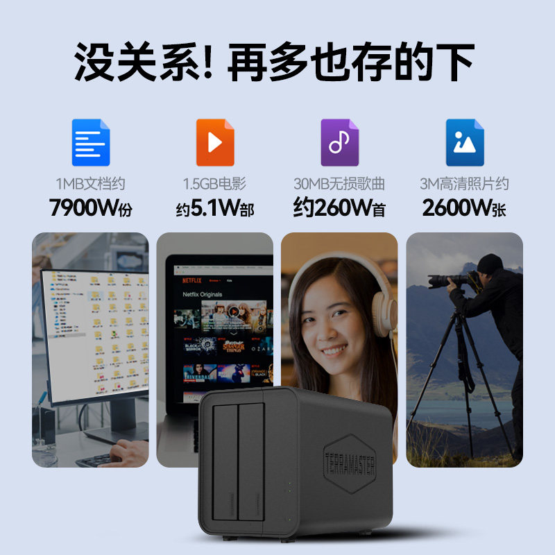 铁威马F2-424 nas网络存储器 家用2盘位私有云家庭存储主机N95处理器远程/局域网共享文件个人云硬盘盒双盘位
