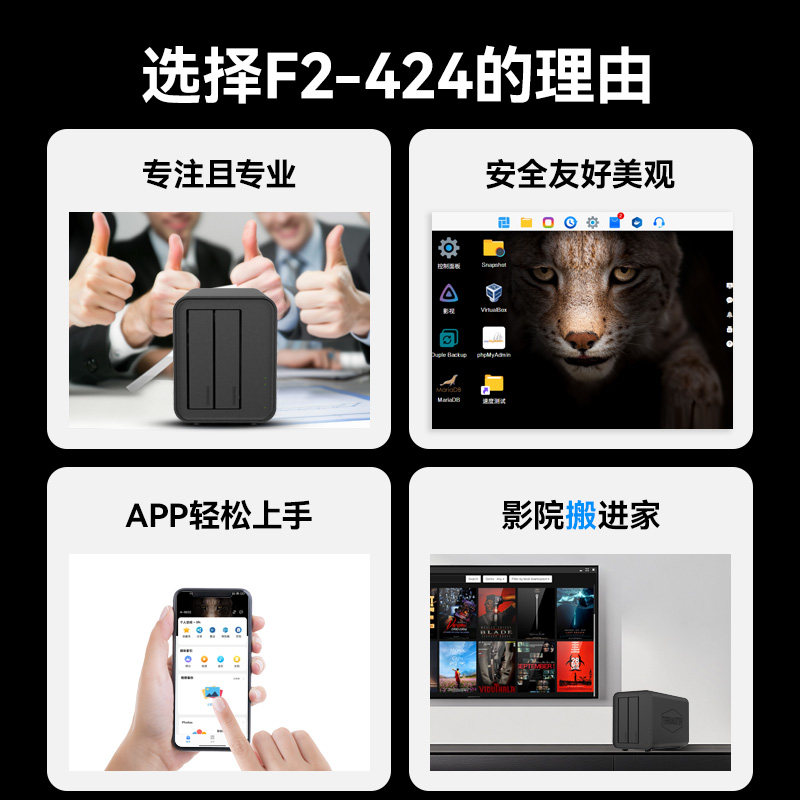 天猫铁威马F2-424 nas网络存储器 家用2盘位私有云家庭存储主机N95处理器远程/局域网共享文件个人云硬盘盒双盘位