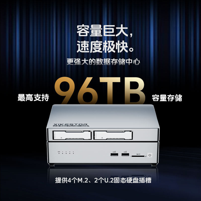 兮克兮甲云全闪NAS网络存储FS510402D是一款面向企业及高端家庭用户的高性能私有云服务器。搭载2个万兆电口,实现高速数据传输,大幅提升多设备并发访问效率。配备4个M.2插槽与2个U.2接口,全面支持NVMe全闪存存储,兼顾速度与扩展性,满足大容量、低延迟的数据共享需求。支持多用户权限管理与RAID冗余保护,保障数据安全。无论是企业文件协同、视频编辑,还是家庭多媒体中心,该NAS均能提供稳定、高效的存储解决方案,是构建现代化智能数据中心的理想选择。