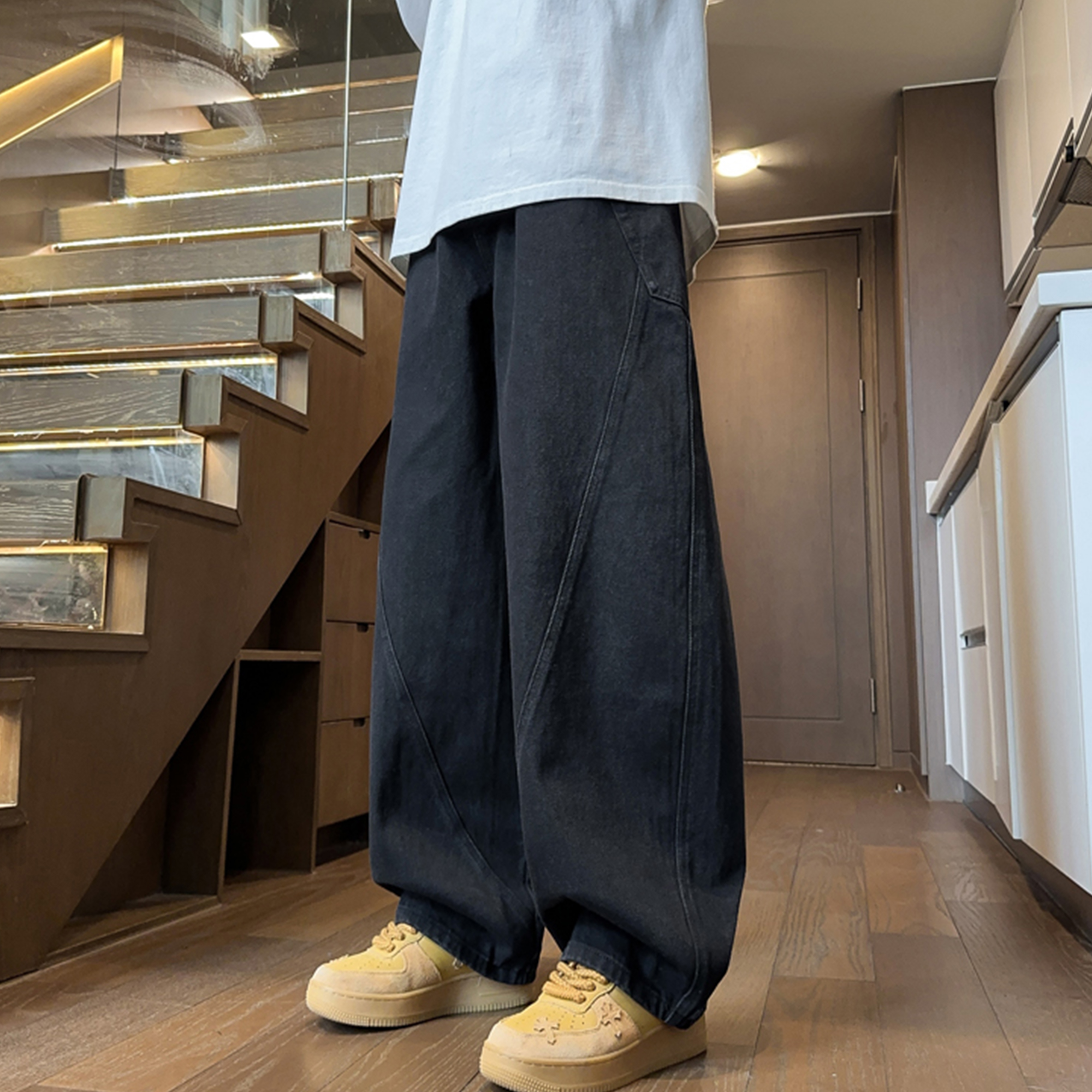 淘宝黑色直筒牛仔裤男春季大码宽松美式复古弯刀长裤休闲阔腿男生裤子
