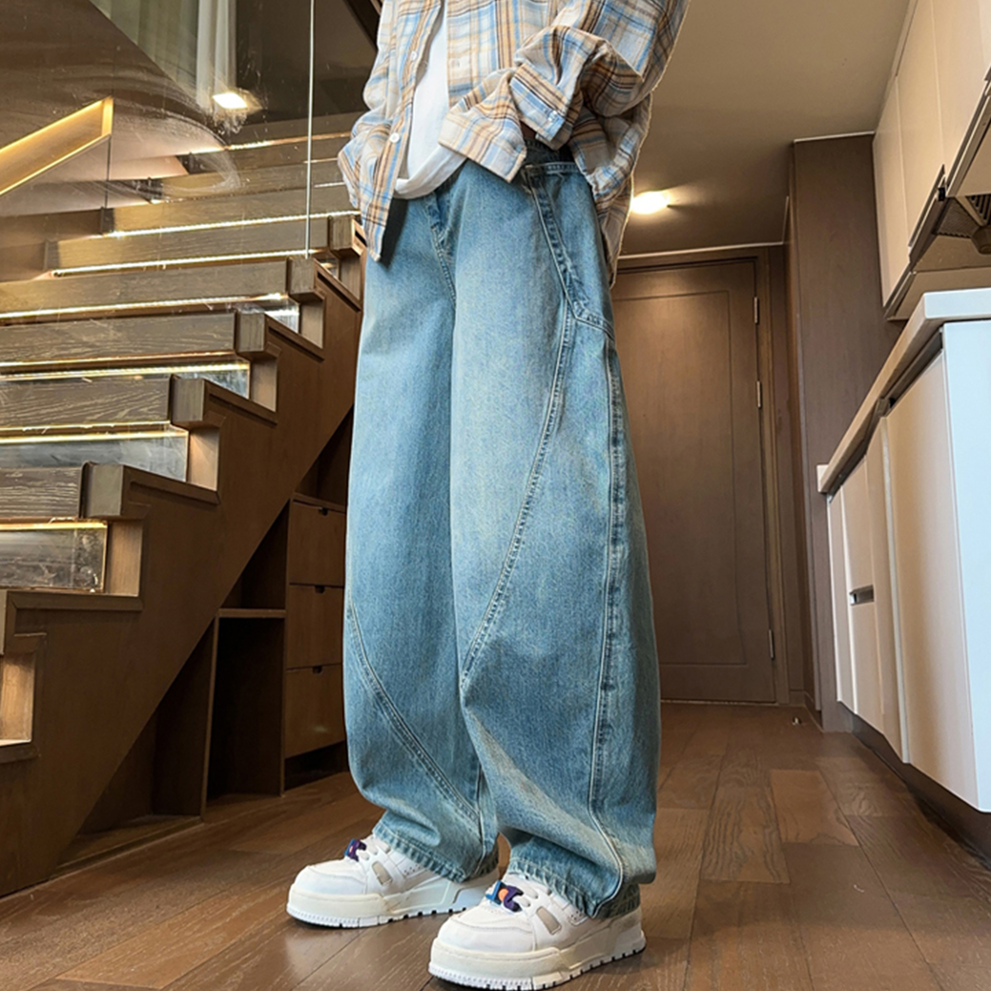 男道cleanfit水洗牛仔裤男春秋季复古宽松直筒阔腿裤美式高街裤子