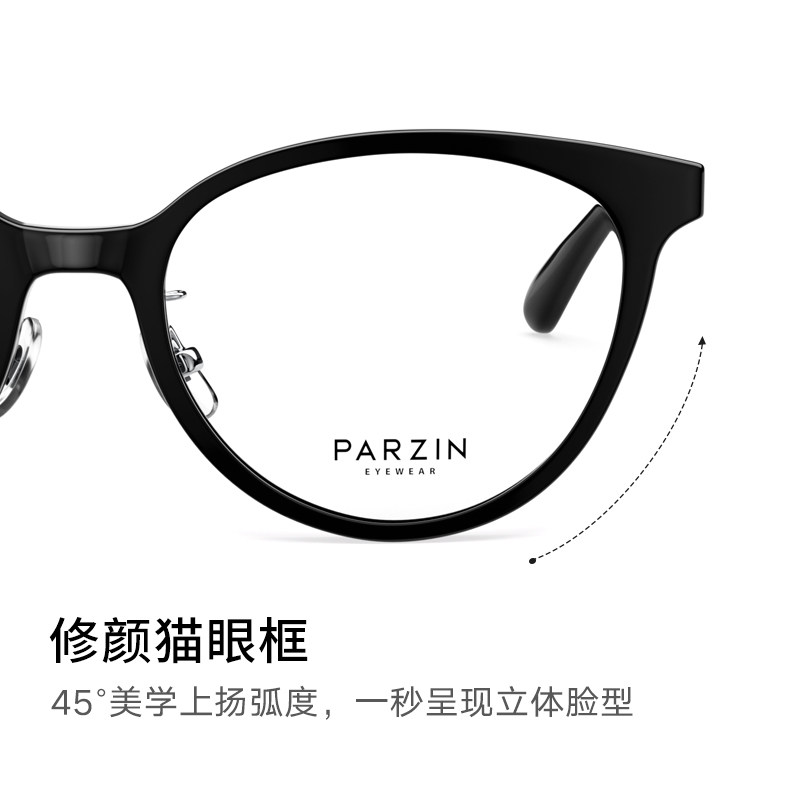 天猫帕森25新款猫眼黑框防蓝光眼镜男女轻盈TR可配蔡司近视镜PZ31128
