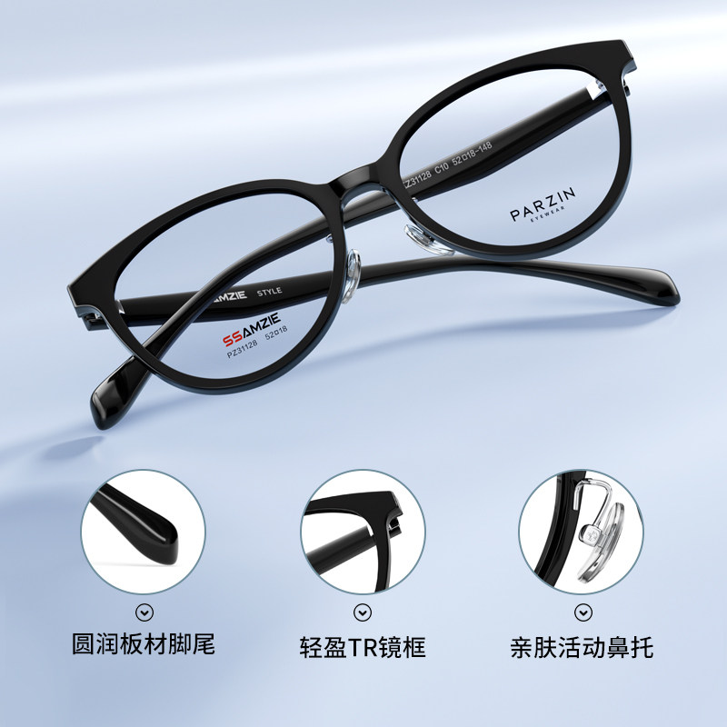 帕森25新款猫眼黑框防蓝光眼镜PZ31128,融合时尚设计与实用功能,专为现代都市人群打造。采用轻盈TR材质,佩戴舒适无压感,适合长时间使用。经典猫眼造型搭配经典黑框,彰显个性又不失优雅,男女皆宜。镜片具备高效防蓝光功能,有效过滤电子屏幕有害蓝光,缓解眼疲劳,保护视力健康。更可配蔡司近视镜片,满足个性化视力矫正需求,兼顾美观与清晰视觉体验。无论是办公、学习还是日常出行,这款眼镜都是理想之选,轻松应对数字生活挑战,守护双眼的同时提升时尚品味。