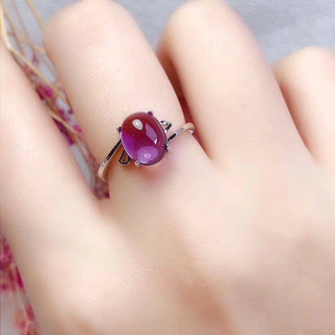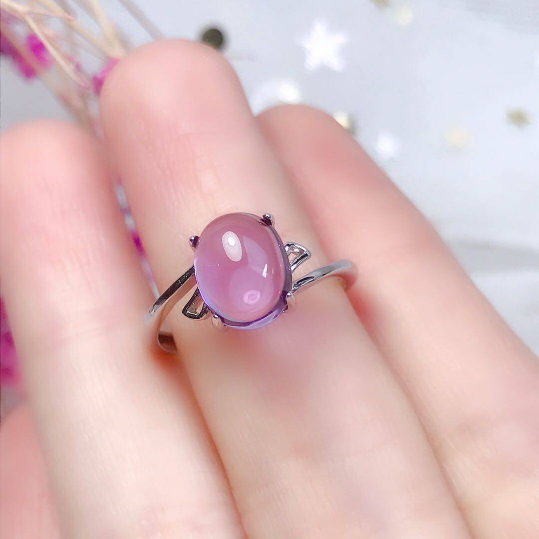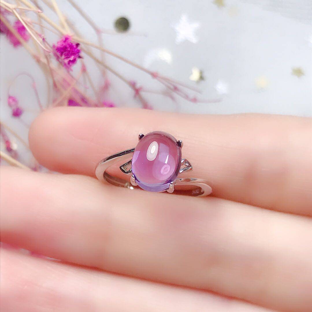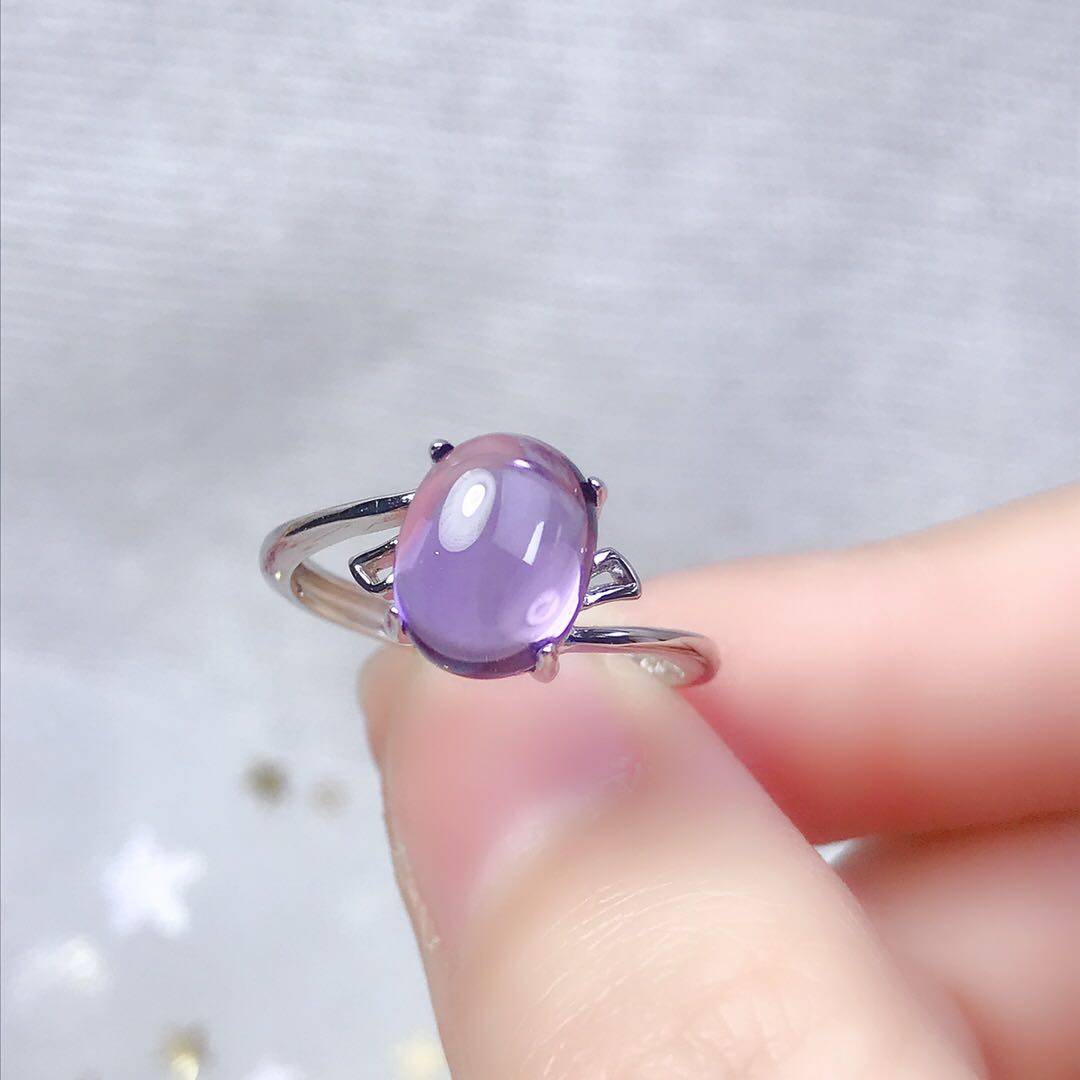 淘宝新款天然紫水晶戒指女戒子指环S925纯银镶嵌紫色椭圆蛋面日韩饰品