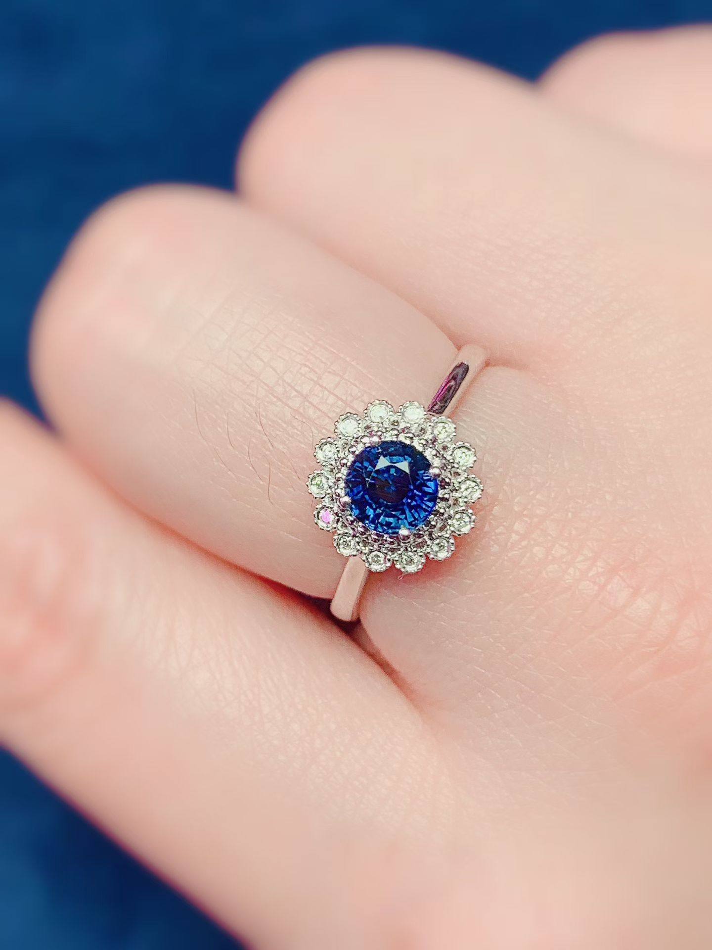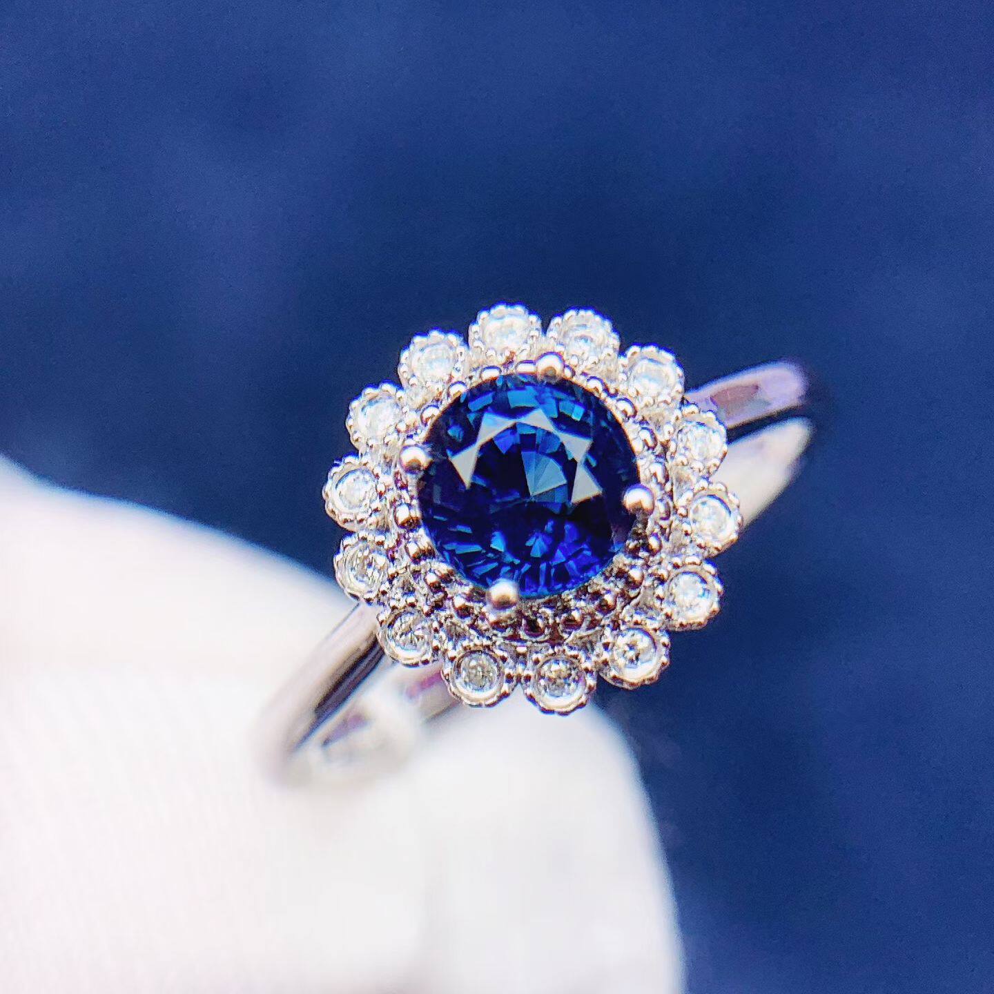 淘宝天然无烧皇家蓝蓝宝石18K金戒指晶体干净火彩耀眼主石:1.0ct