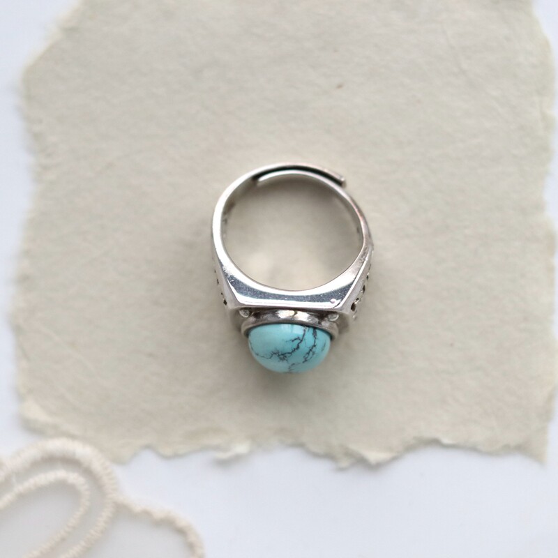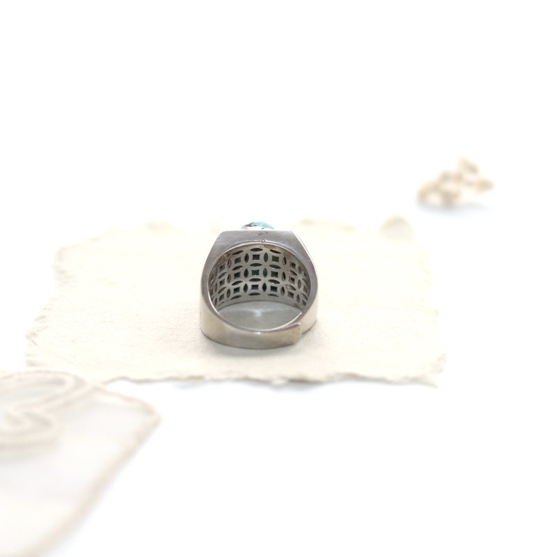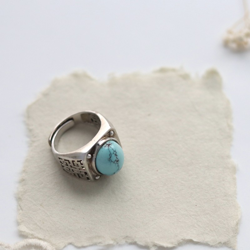 湖北天然原矿绿松石S925银镶嵌活口男士戒指宽8.2mm原矿设计