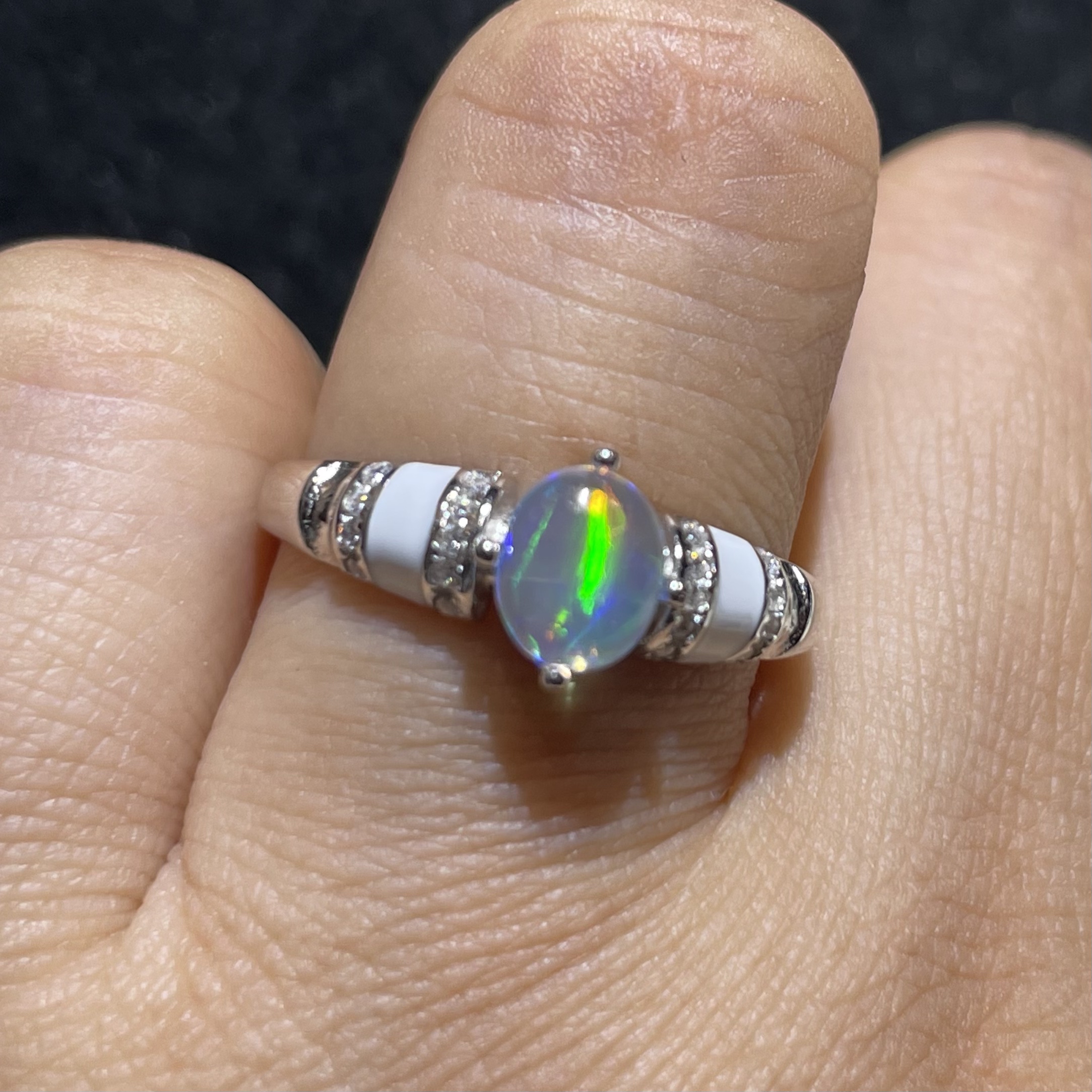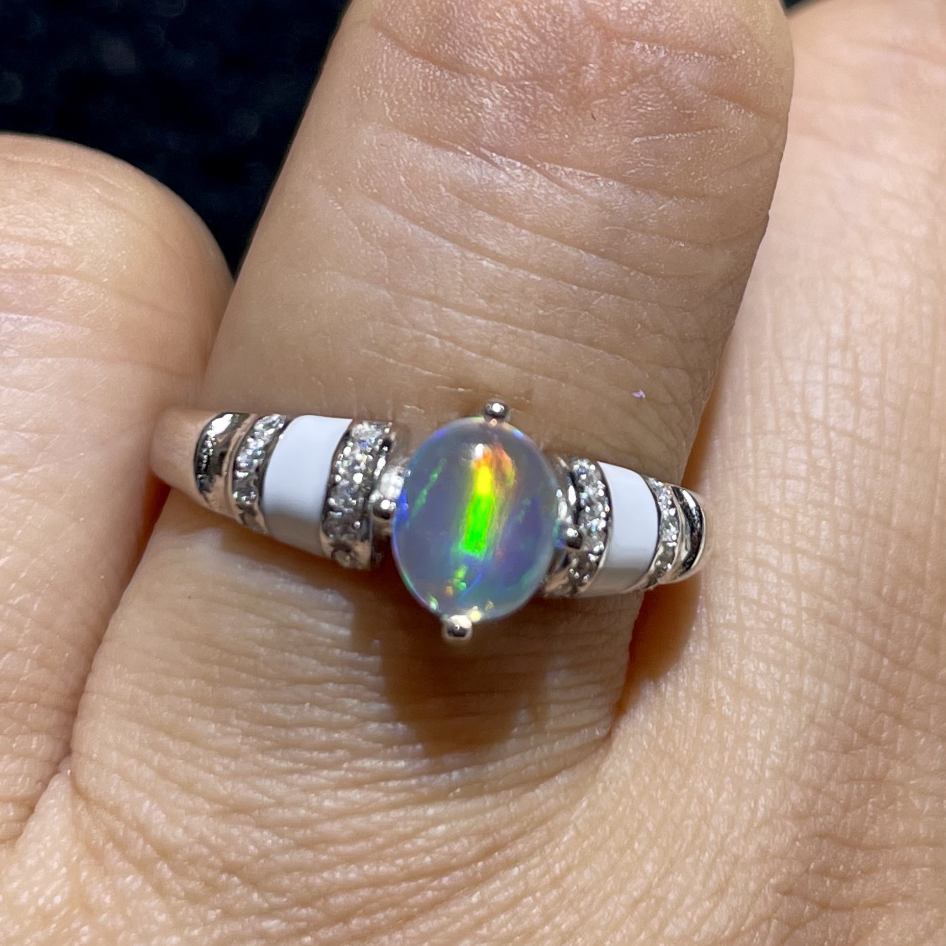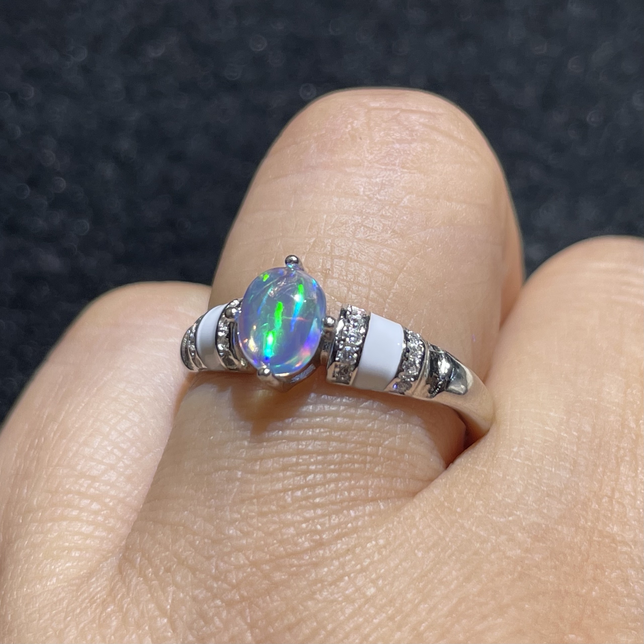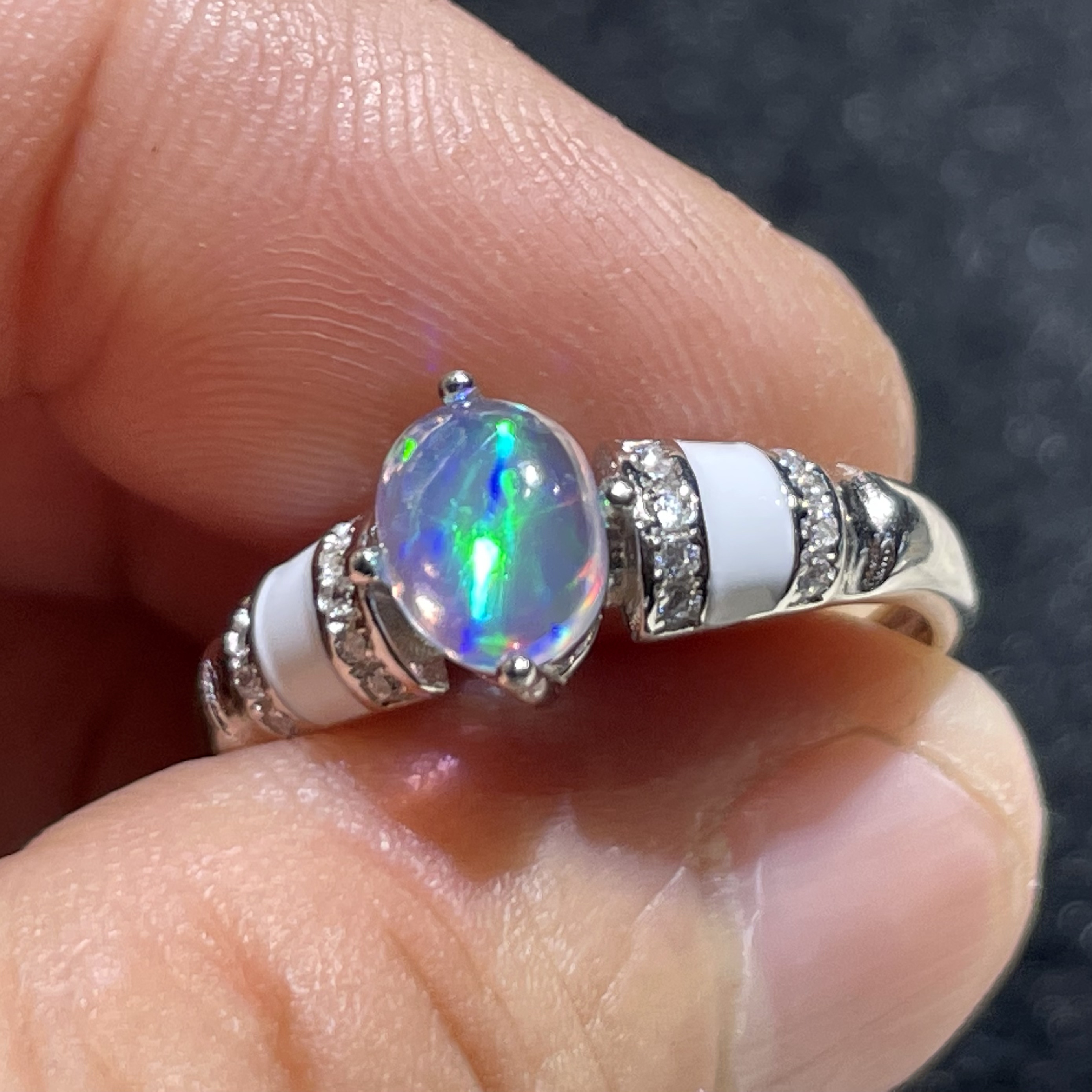 淘宝天然墨西哥火欧泊戒指925银镶嵌送女友送闺蜜礼物