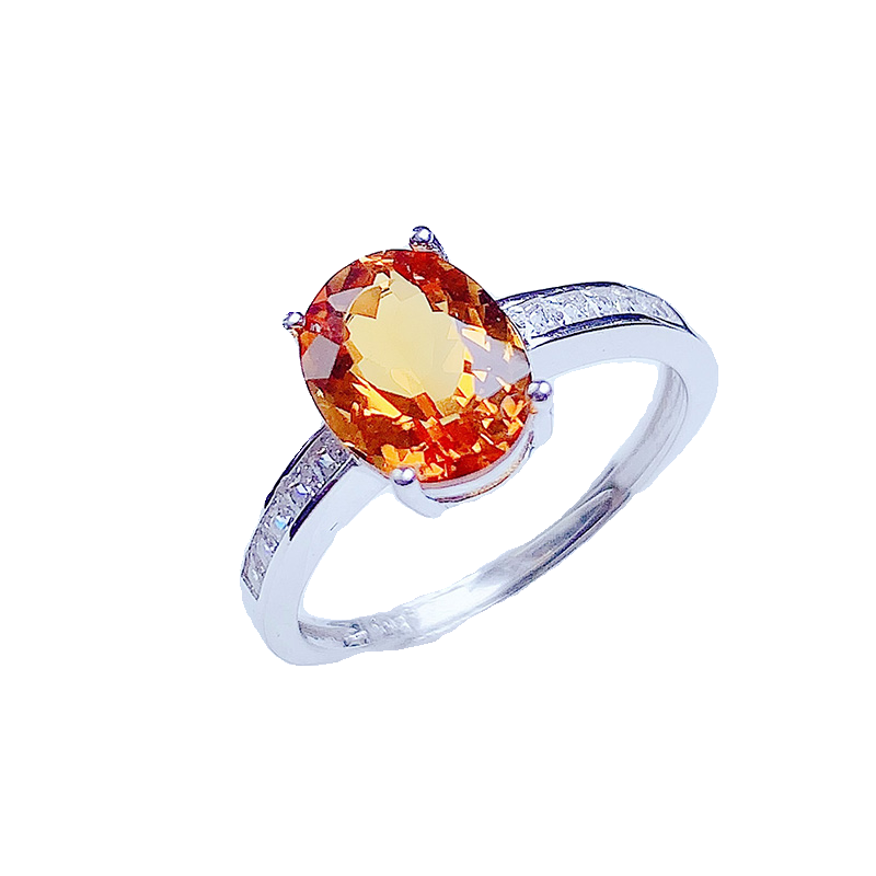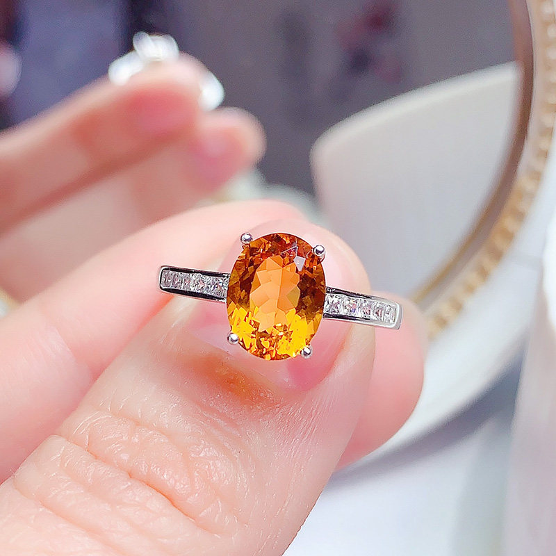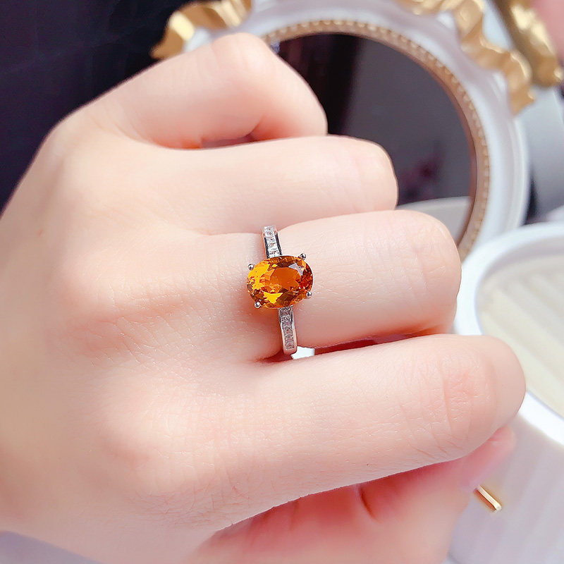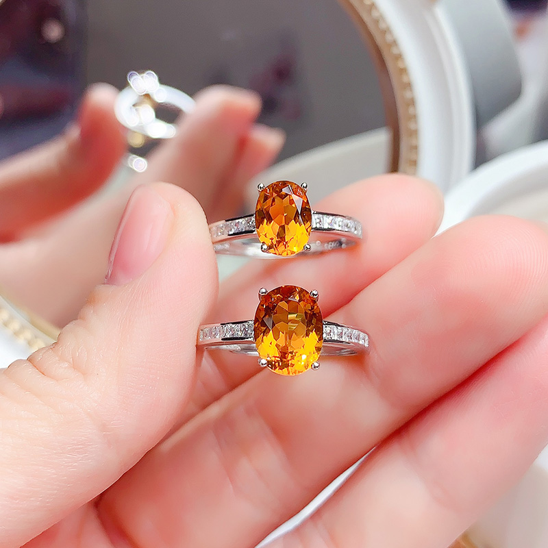 淘宝925纯银镶嵌天然黄水晶戒指开口女黄色宝石百搭简约精致轻奢银戒